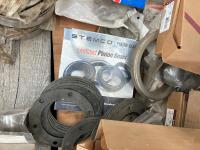 qty of differential seals, qty of trailer axle caps, (2) document holders, (6) wheel bearing sets, (8) pinion nut and seal, (10) aluminum drum protectors