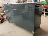 73.5 inch wide X 24 inch deep X 43.5 inch high, on casters