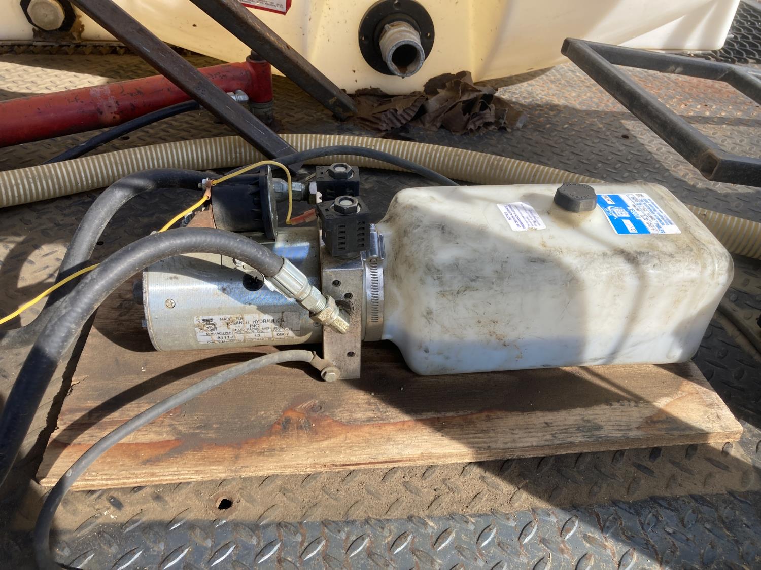 100 inch X 194 inch custom truck deck with 1040 gallon poly tank, 16 ft right side boom, 12 volt electric pump