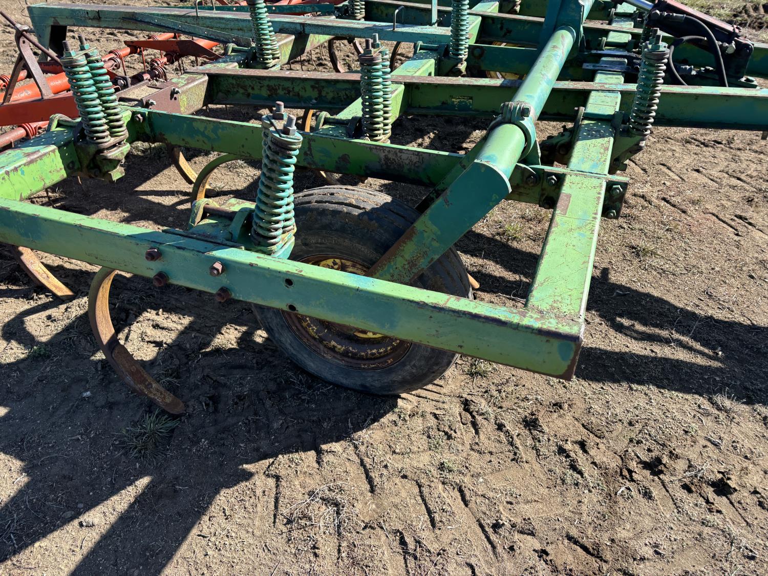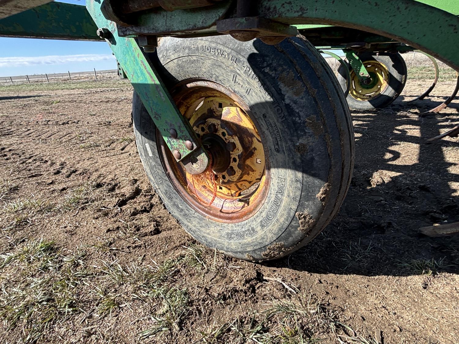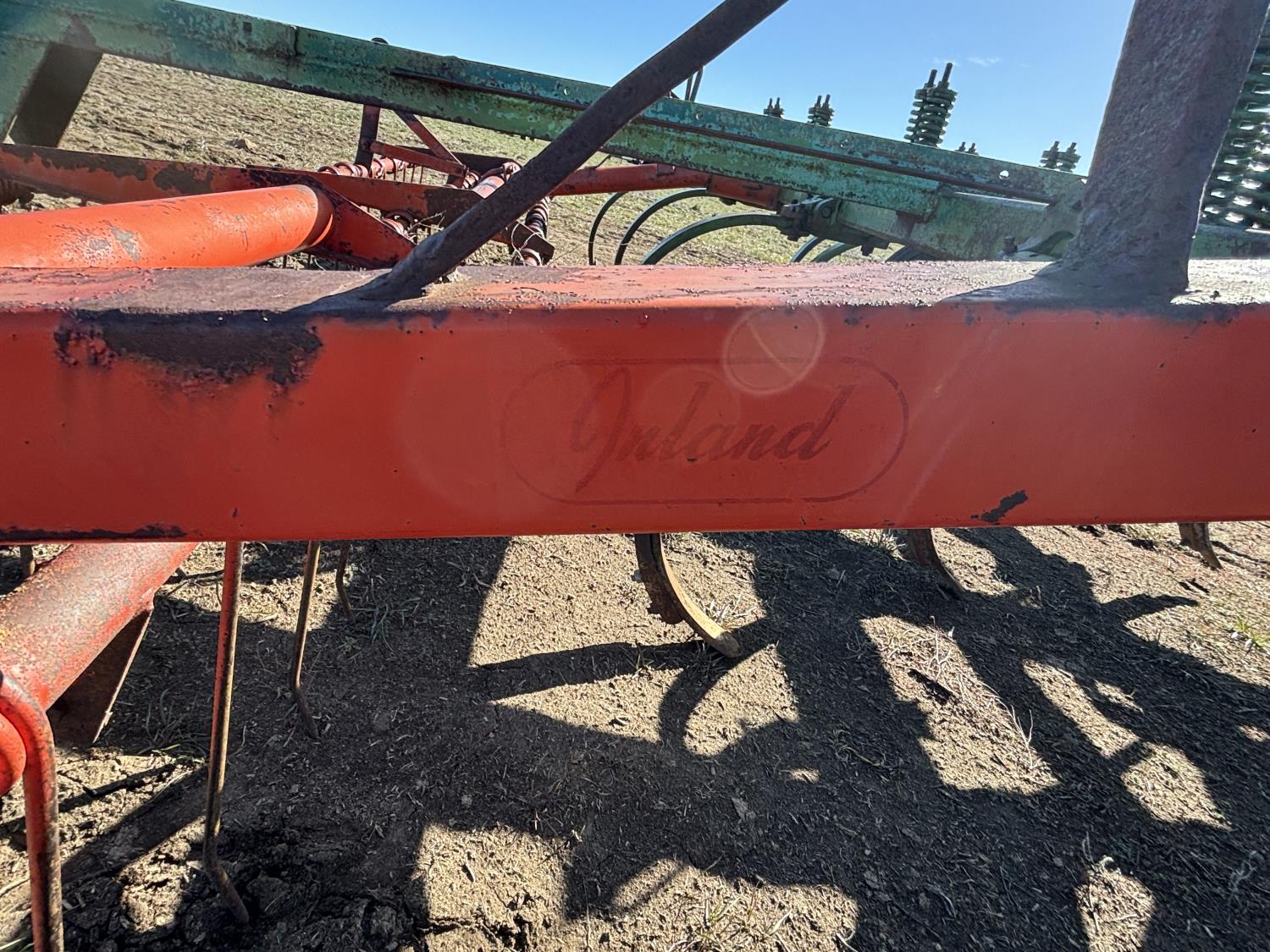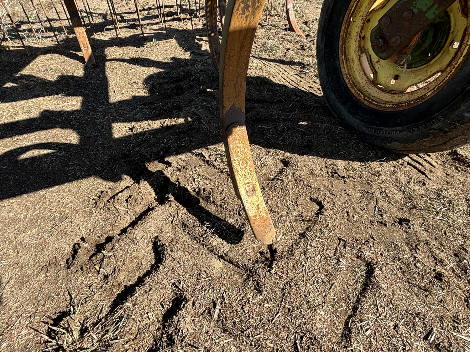 10 inch spacing, spikes, Inland 3 bar spring tooth harrows, rear hitch, 7.60-15 main frame tires