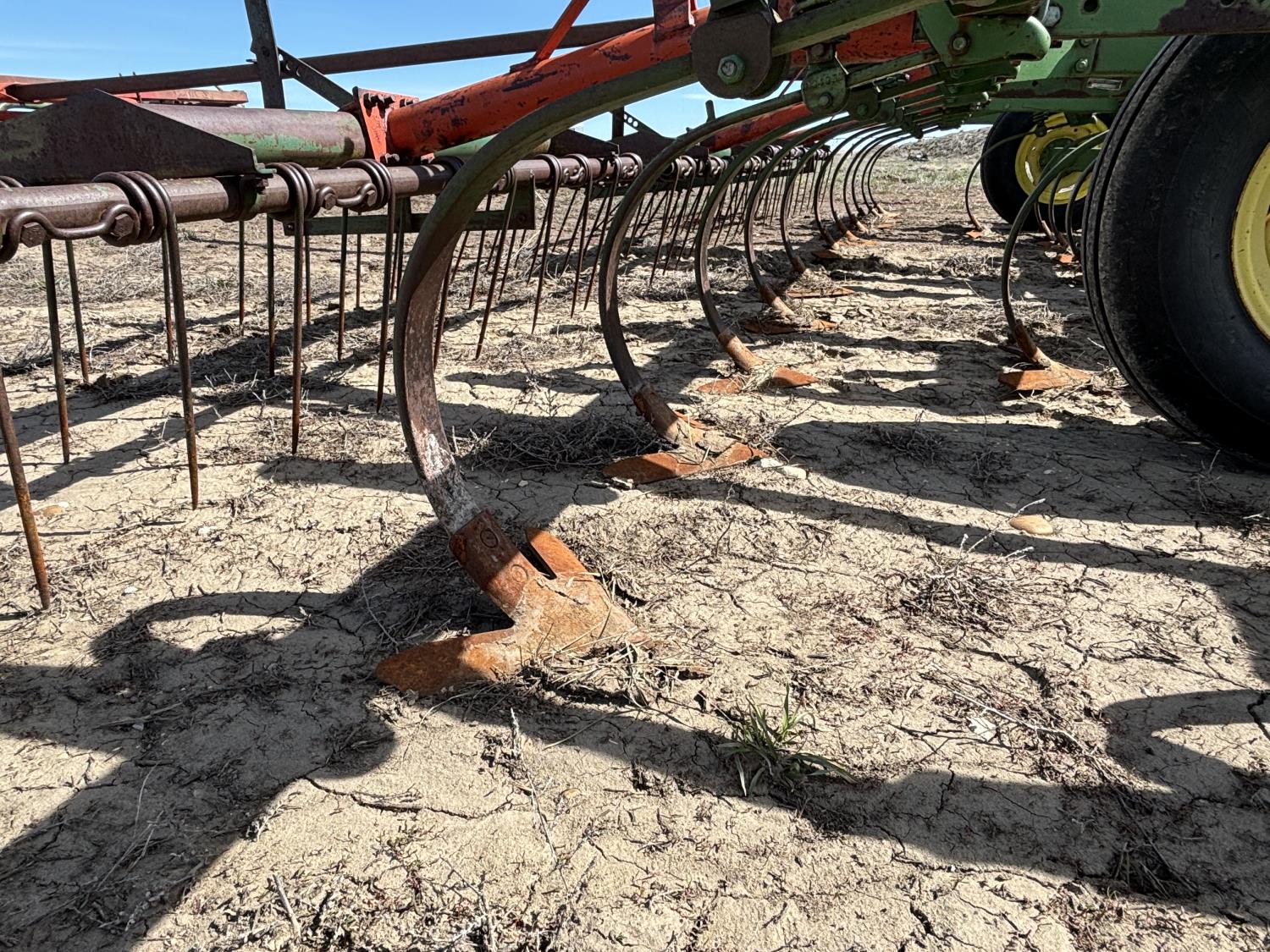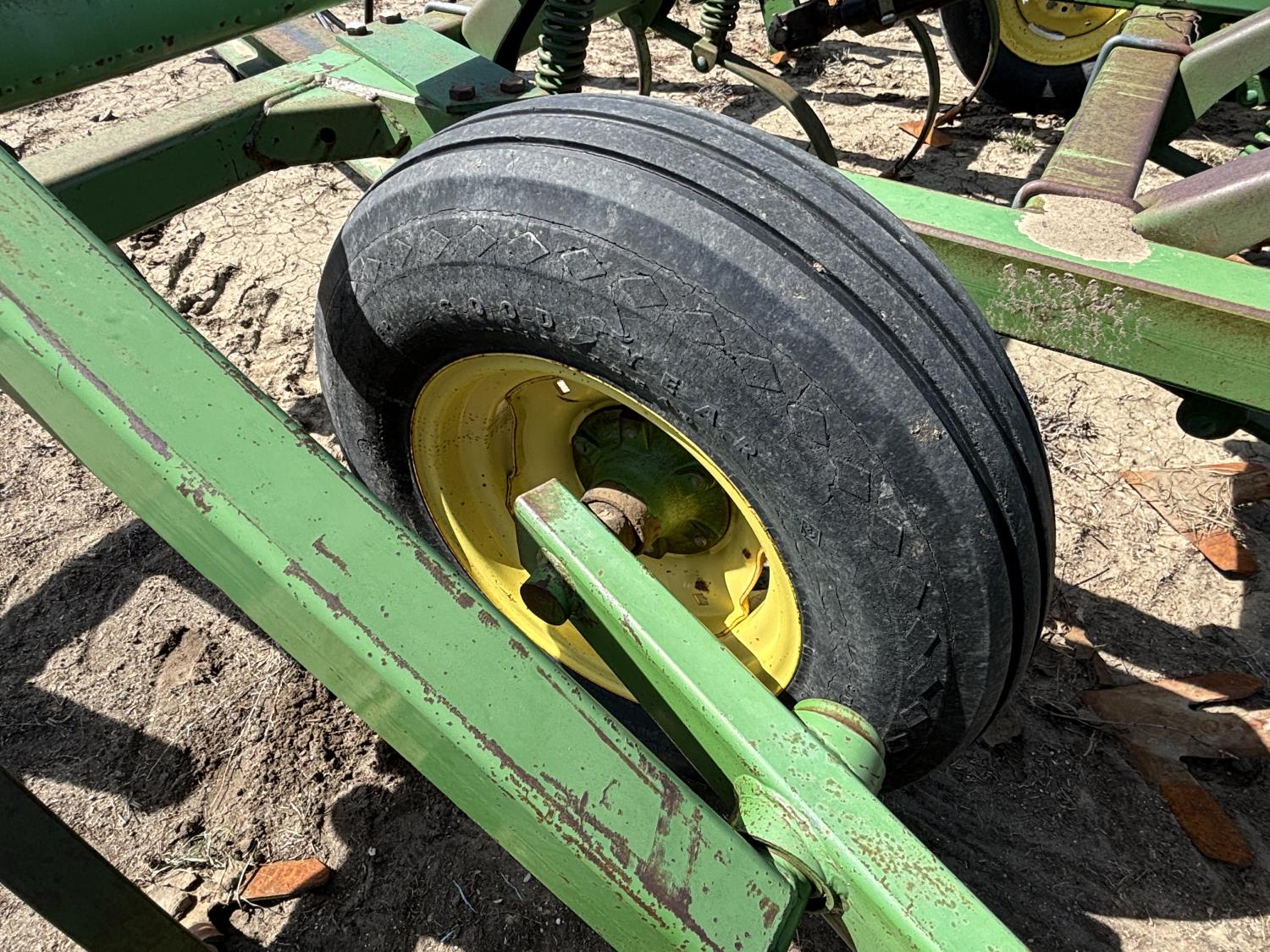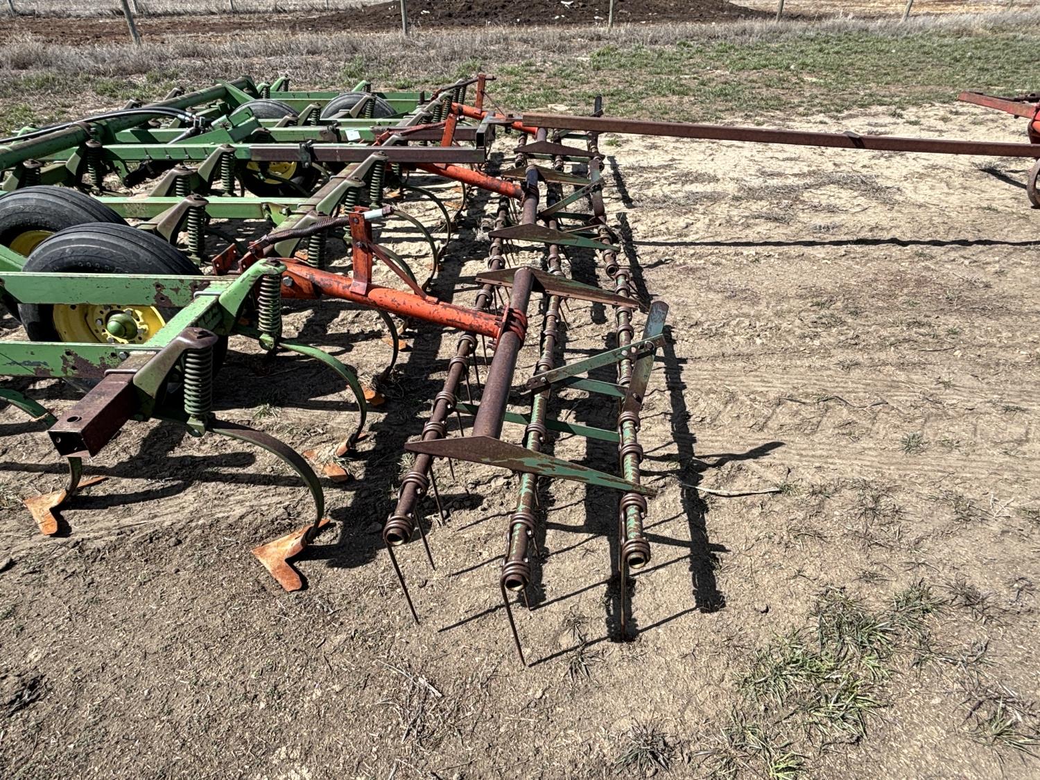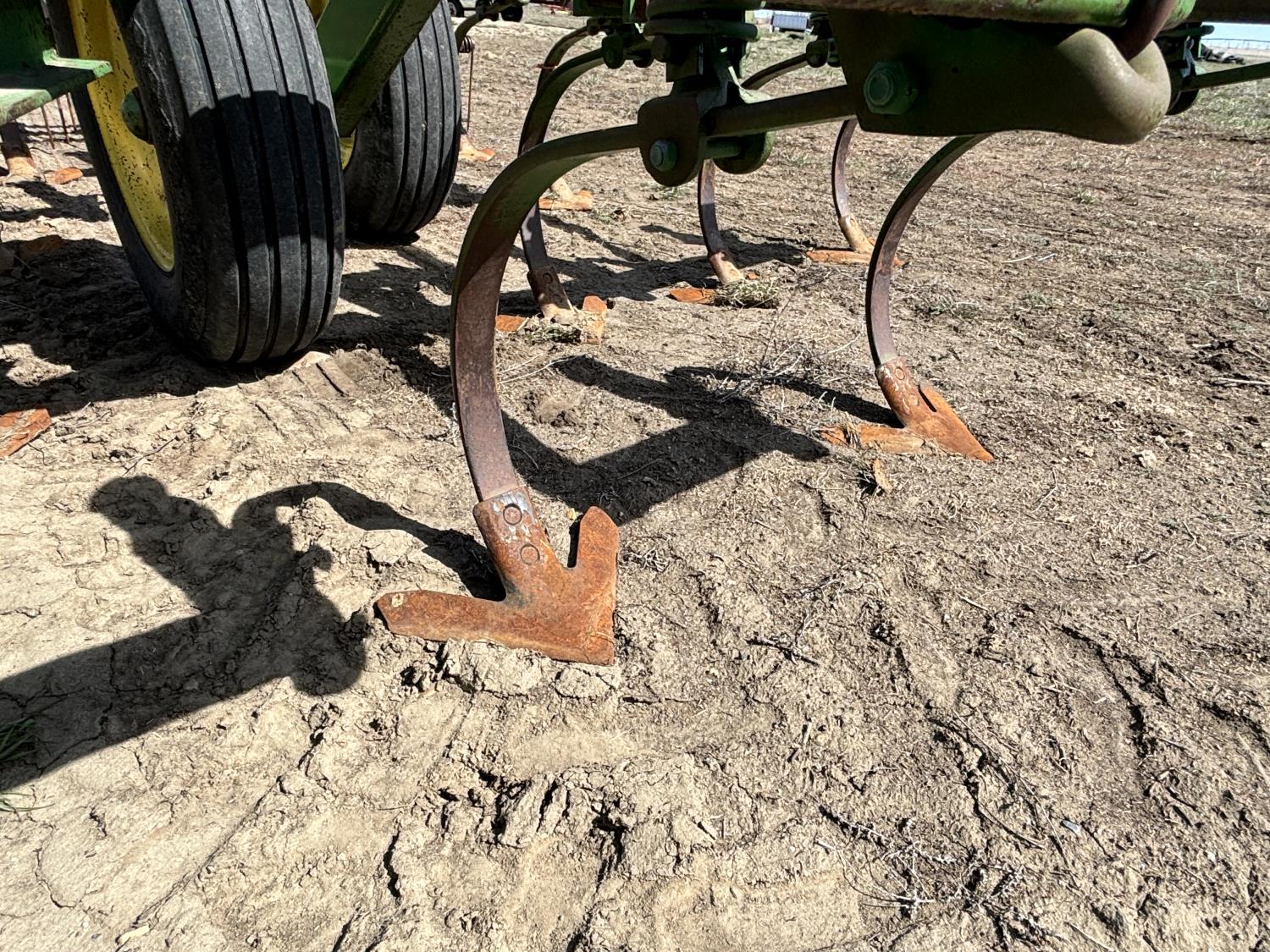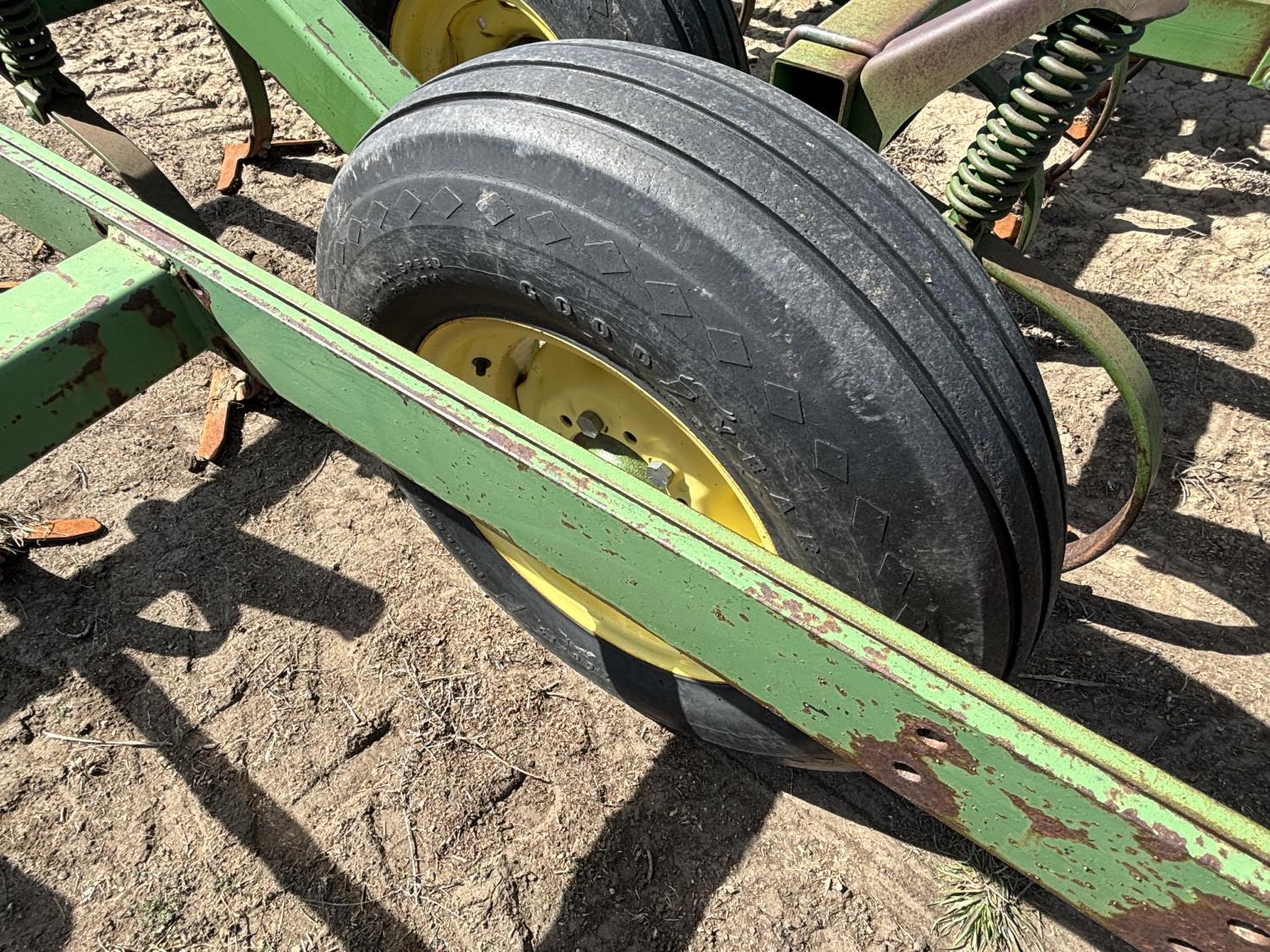 7 inch spacing, 11 inch sweeps, spring tooth harrows, rear hitch, walking axles on main frame, 7.60-15 tires