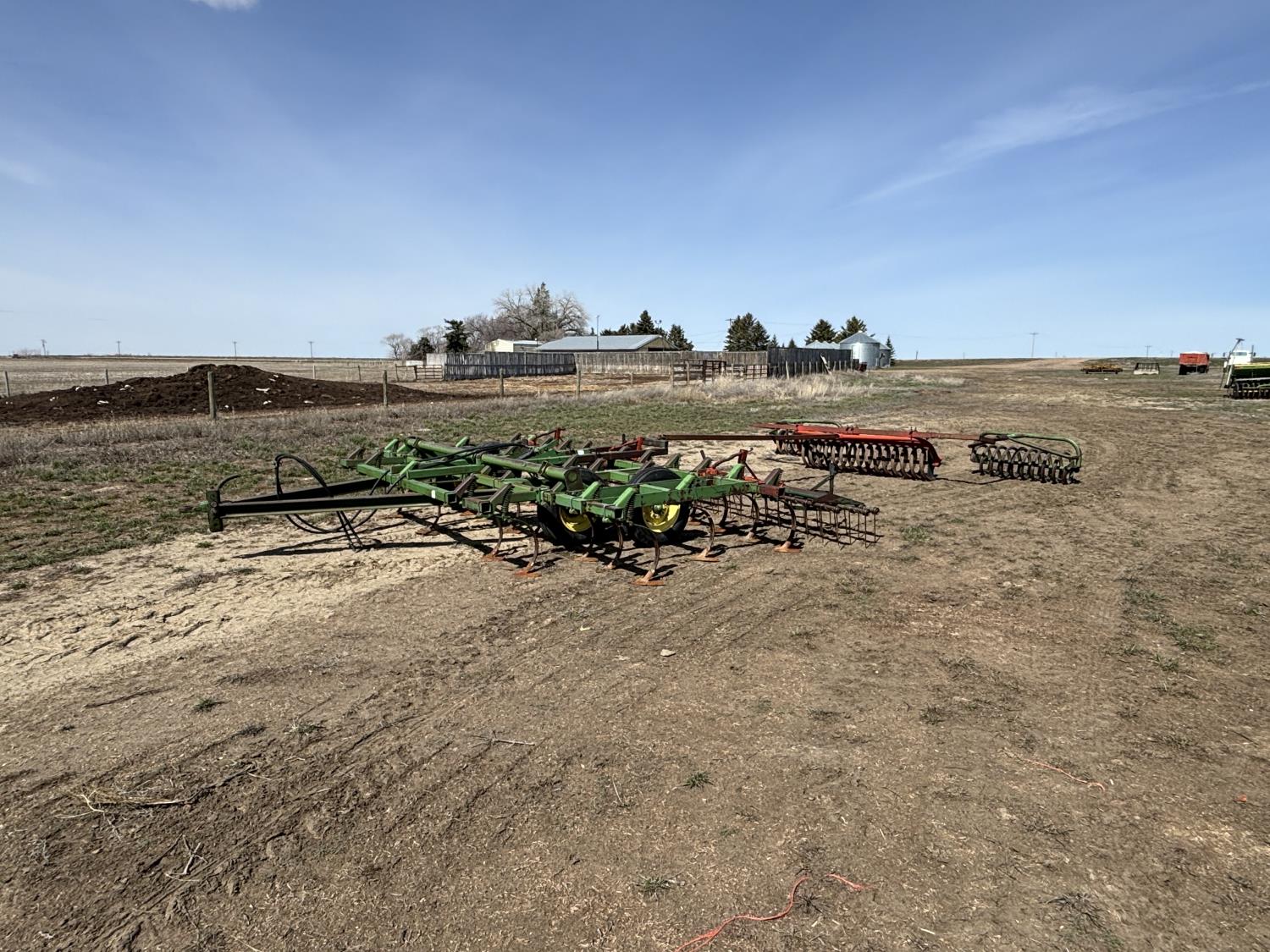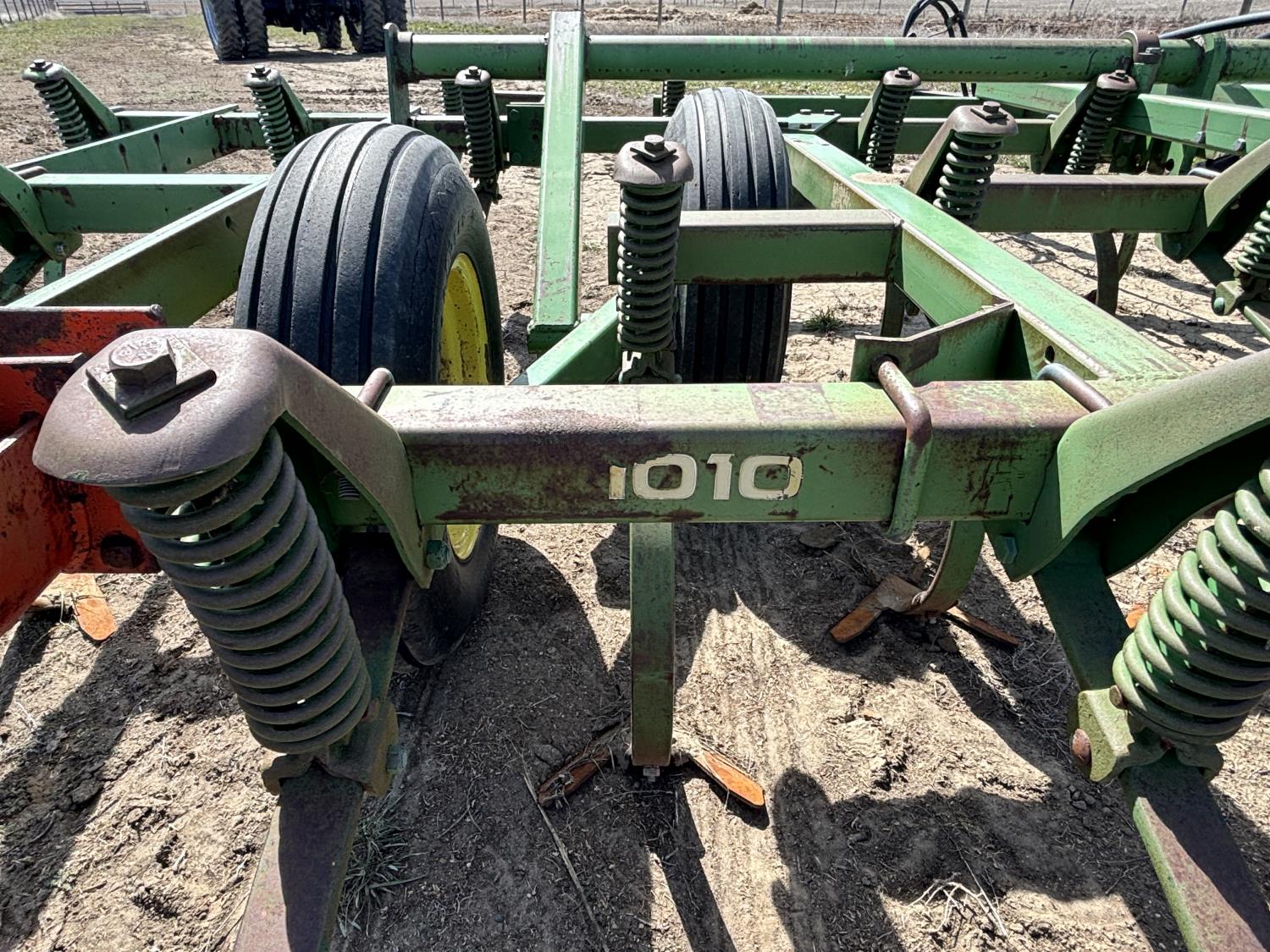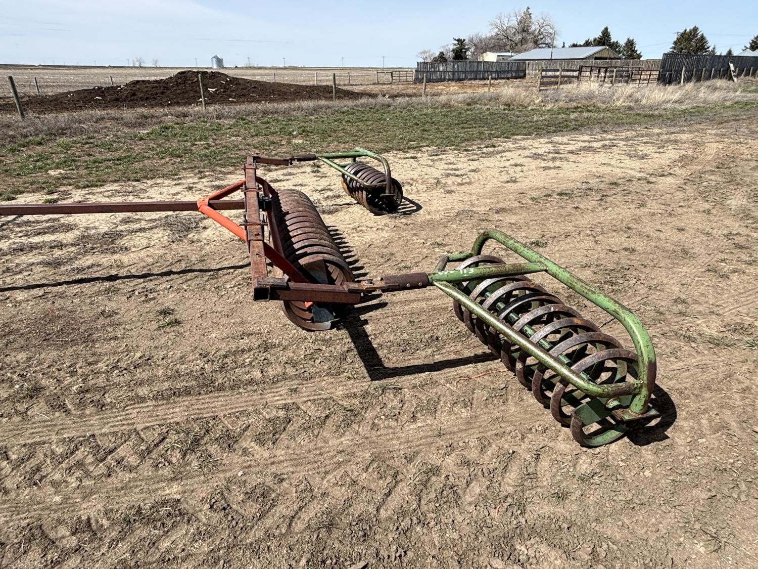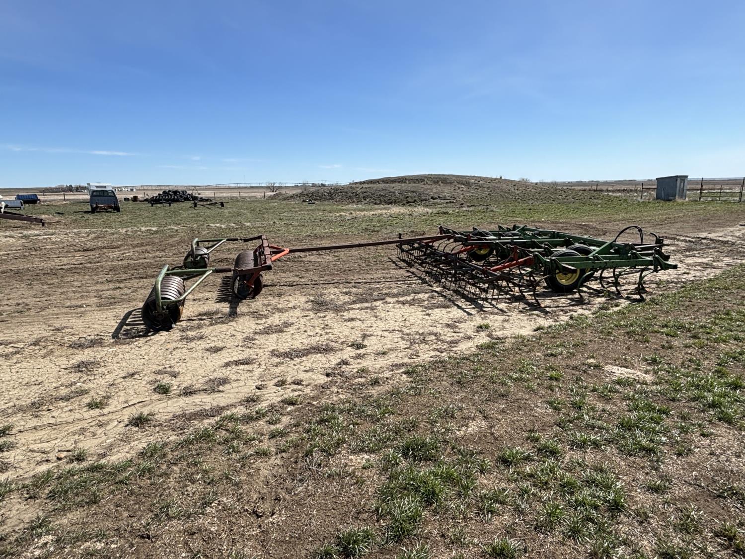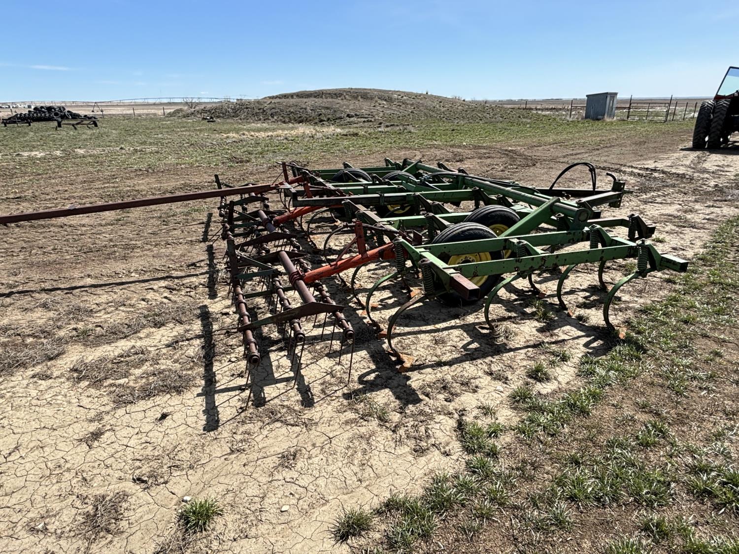 7 inch spacing, 11 inch sweeps, spring tooth harrows, rear hitch, walking axles on main frame, 7.60-15 tires