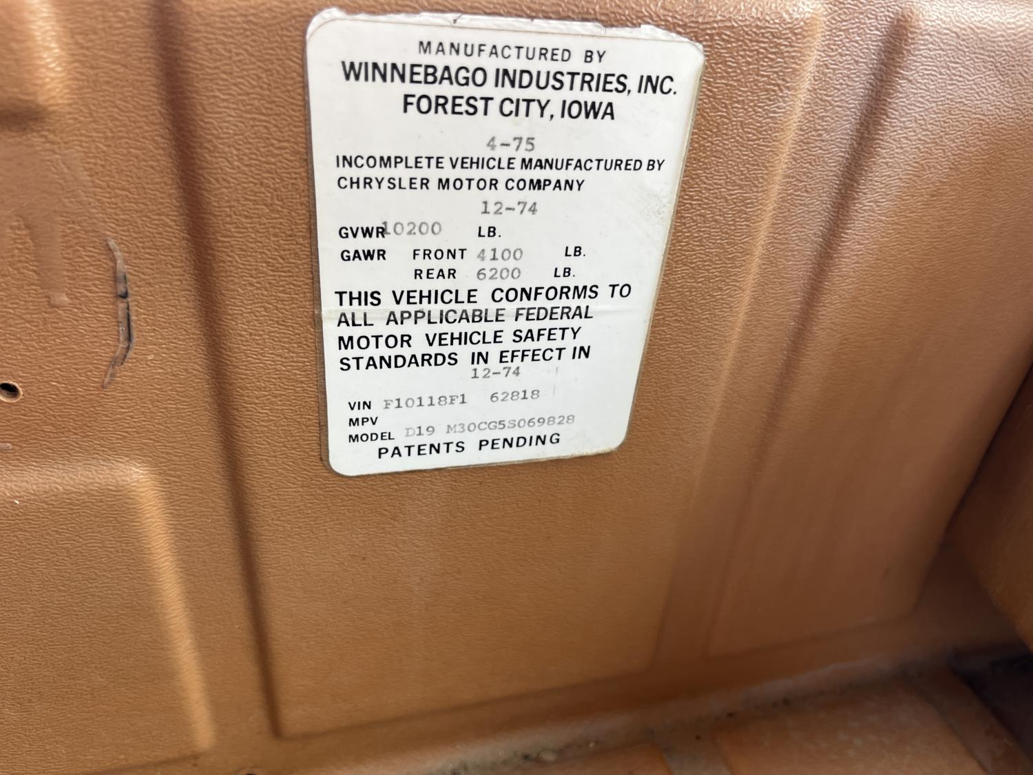 141 1975 Winnebago RV 18 Ft S/A Motorhome