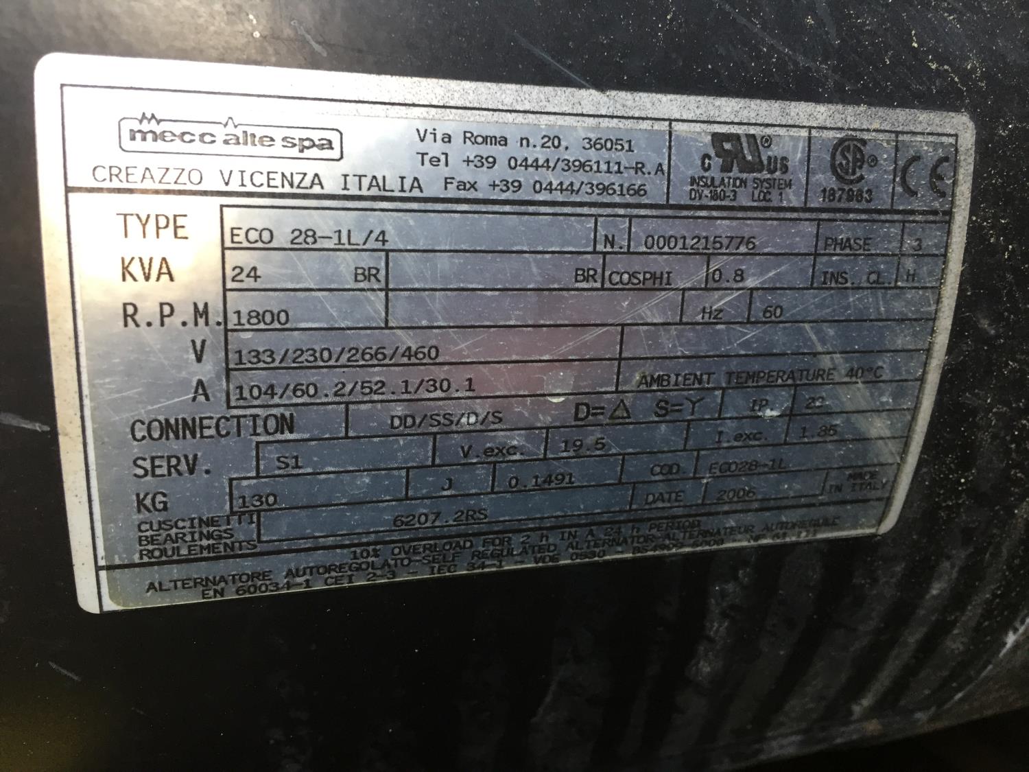 Isuzu 2.2 L, 4 cylinder, 133/230/266/460 V, 60 Hz, 3 phase, ST205/75R15