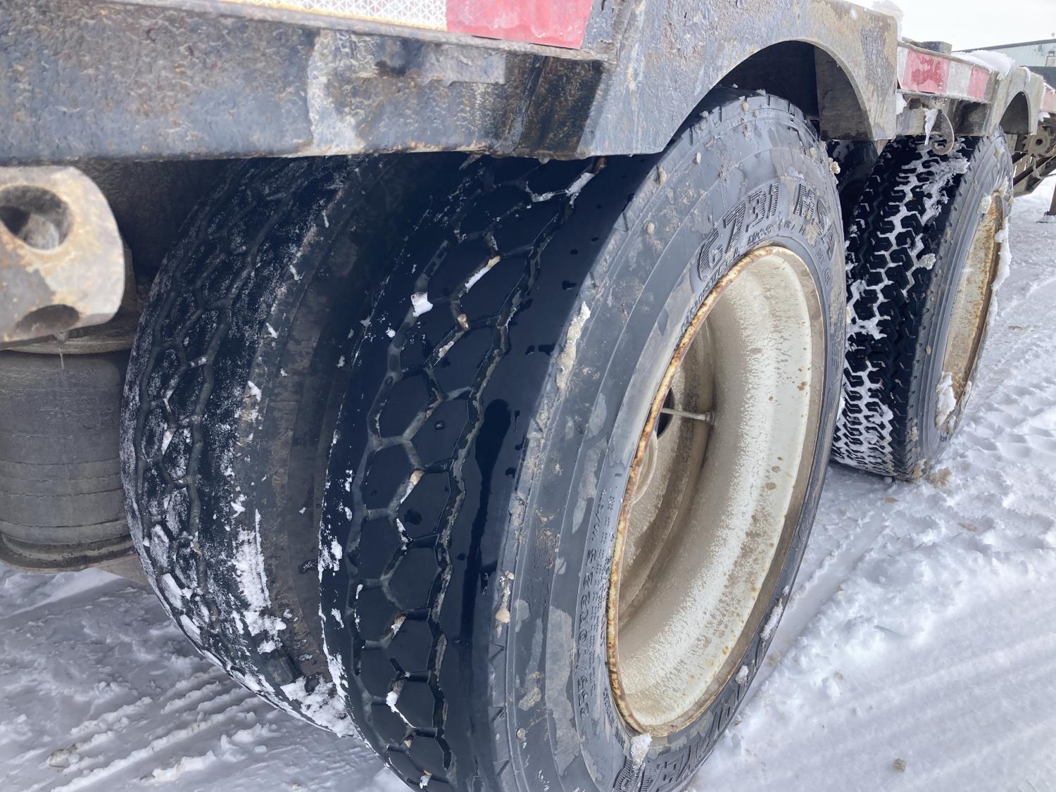 96 inch wide deck, 132 inch upper deck, wood deck, stake pockets, rub rails, cargo winches, air scales, air brakes, 42 inch beaver tail w/ folding ramps, air ride suspension, 255/70R22.5 tires