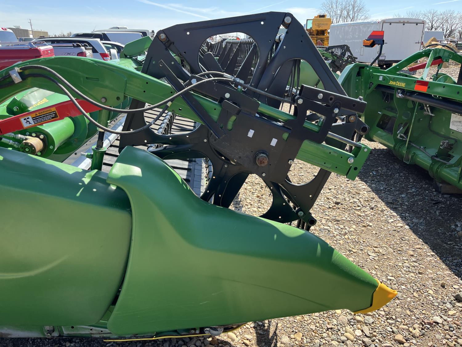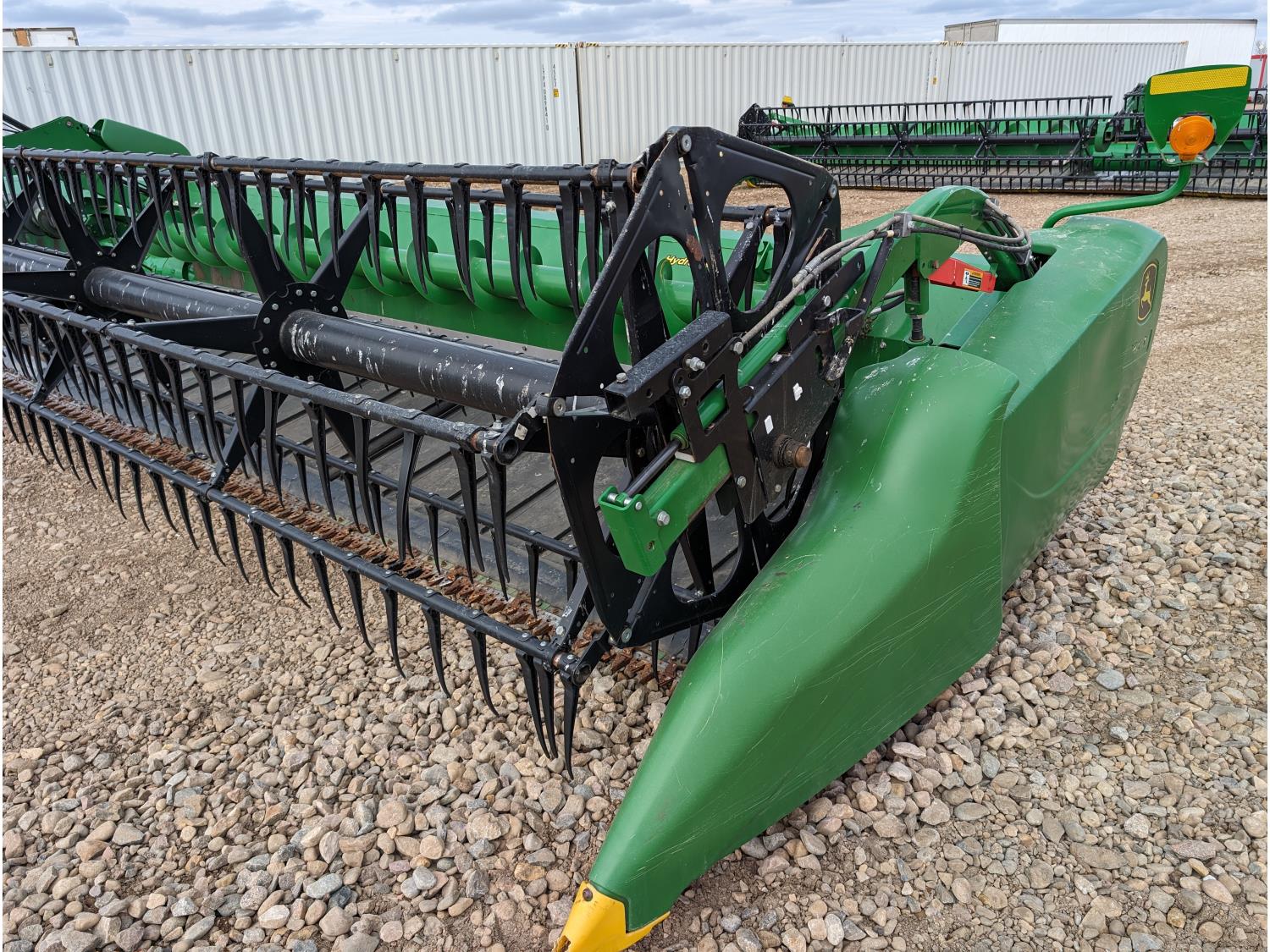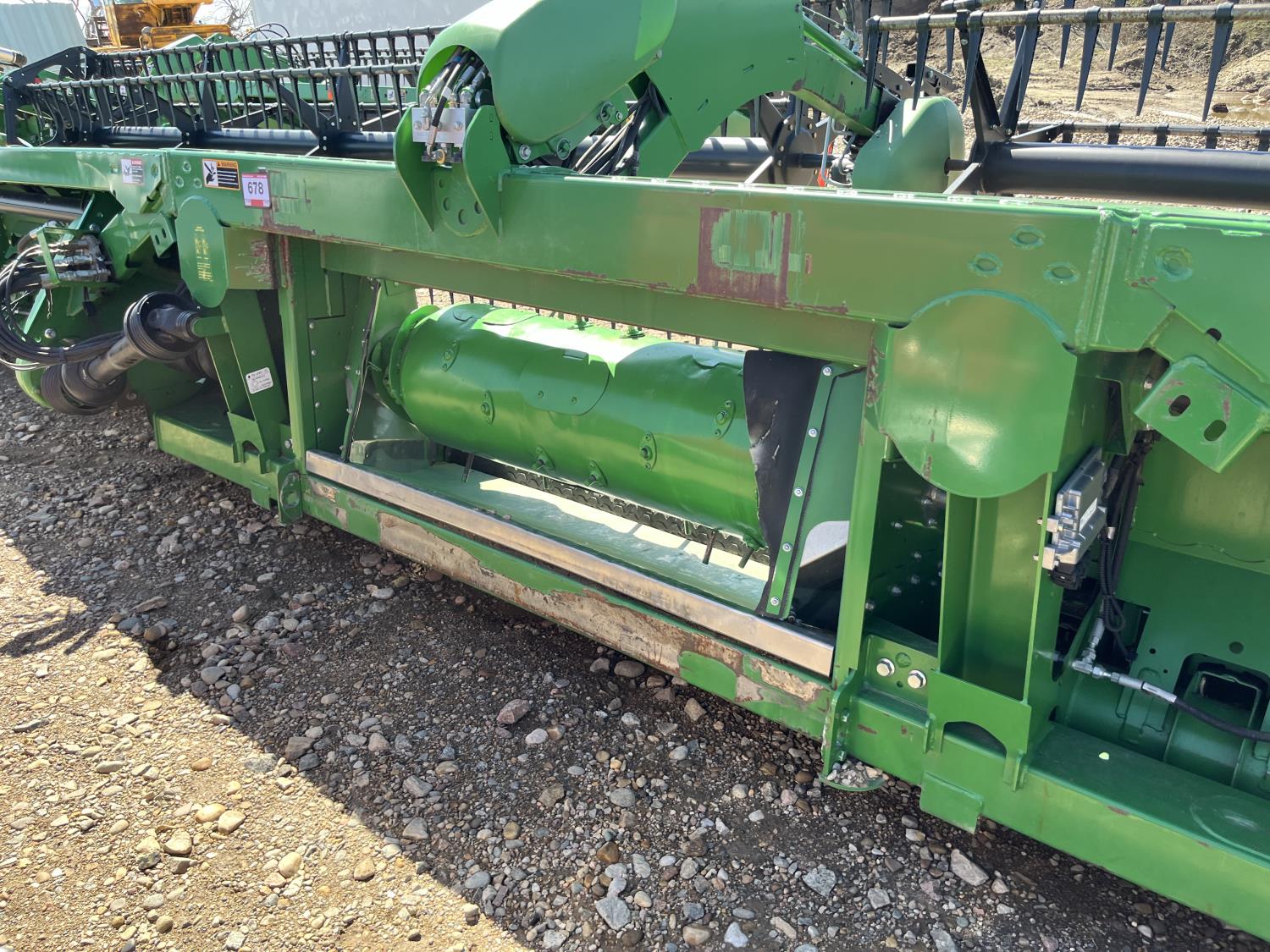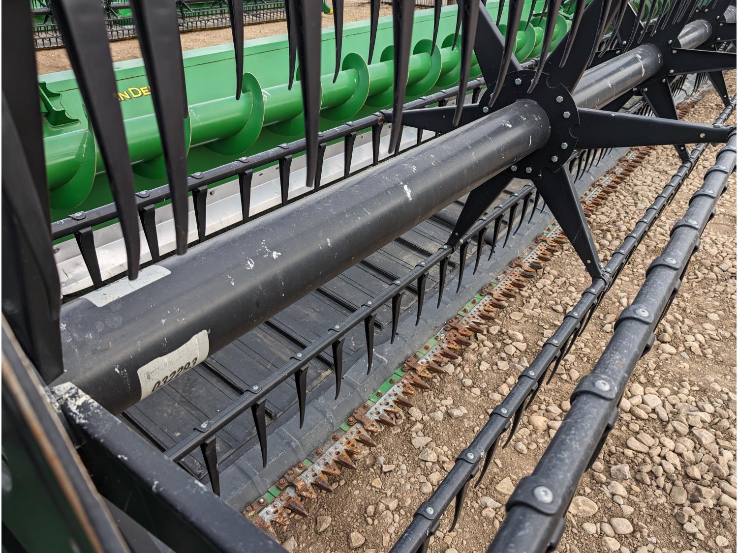 split pickup reels, hydraulic fore & aft, double knife drive, cross auger, poly skid plates, single point hookup, to fit John Deere S680