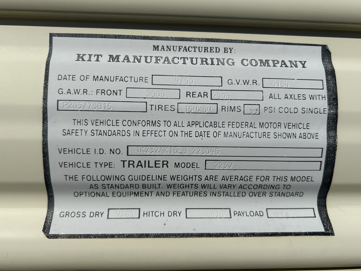 stove, fridge, full bath, manual awning, 205/75R15 tires