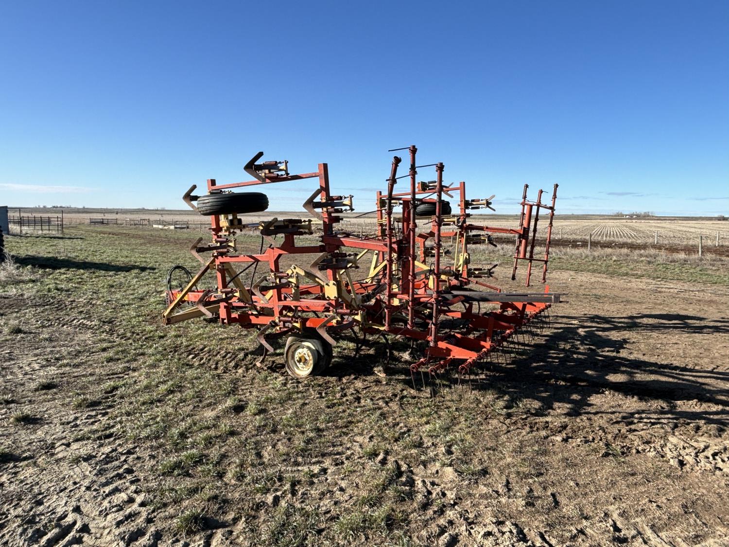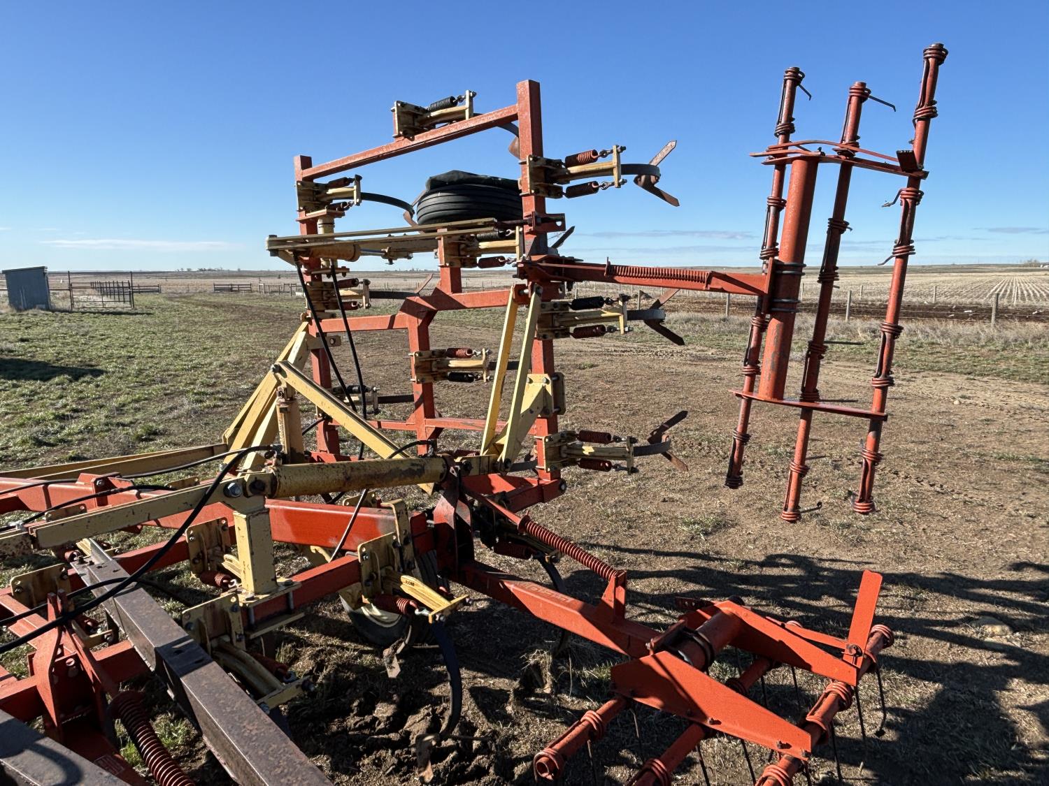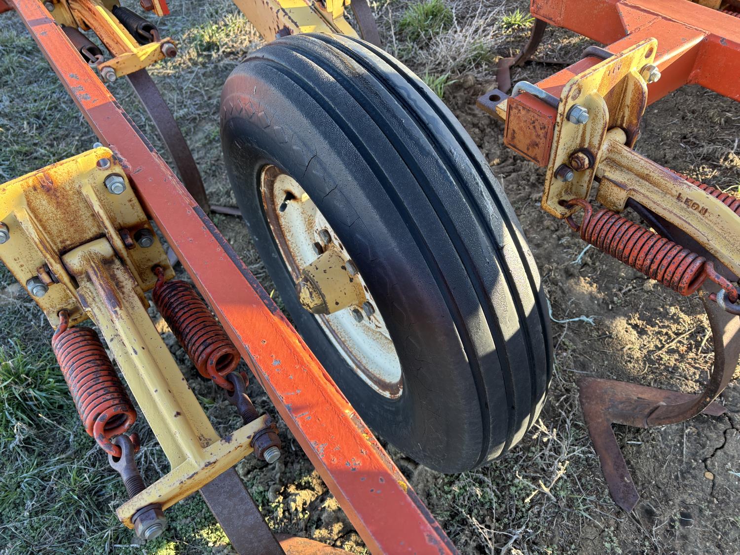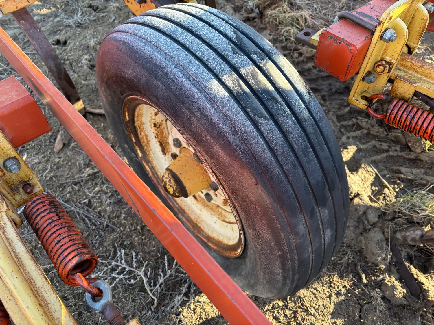 9 inch spacing, 11 inch sweeps, Leon 3 bar spring tooth harrows, rear hitch, 7.60-15 tires