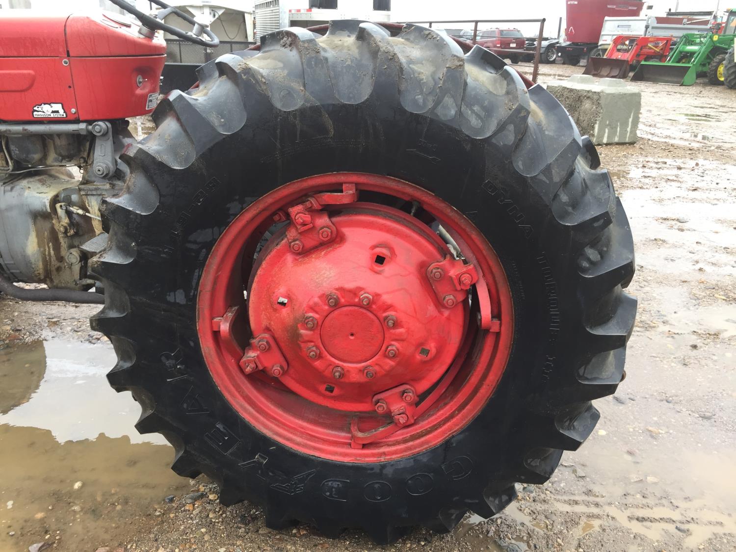 54 HP, engine, 41 PTO HP, 6 speed manual transmission, 540 PTO, 3 point hitch, 1 rear hydraulic outlets, 5.50-16 front tires, 14.9-28 rear tires