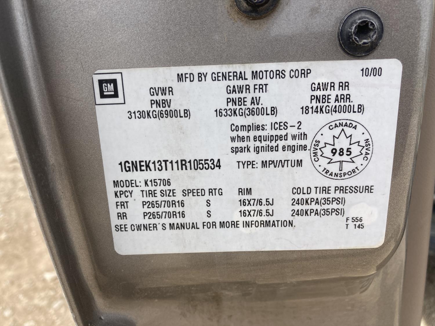 5.3 L, automatic transmission, leather, P/W, P/L, 3rd row seating, 265/70R16 tires