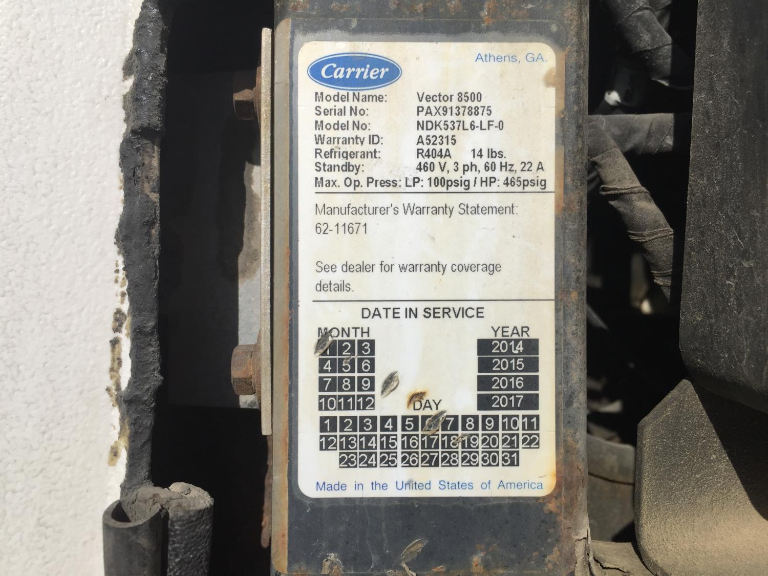 8 ft 2 inch van width, 105 inch height, Carrier reefer, central tire inflation, air brakes, air ride suspension, 275/80R22.5 tires