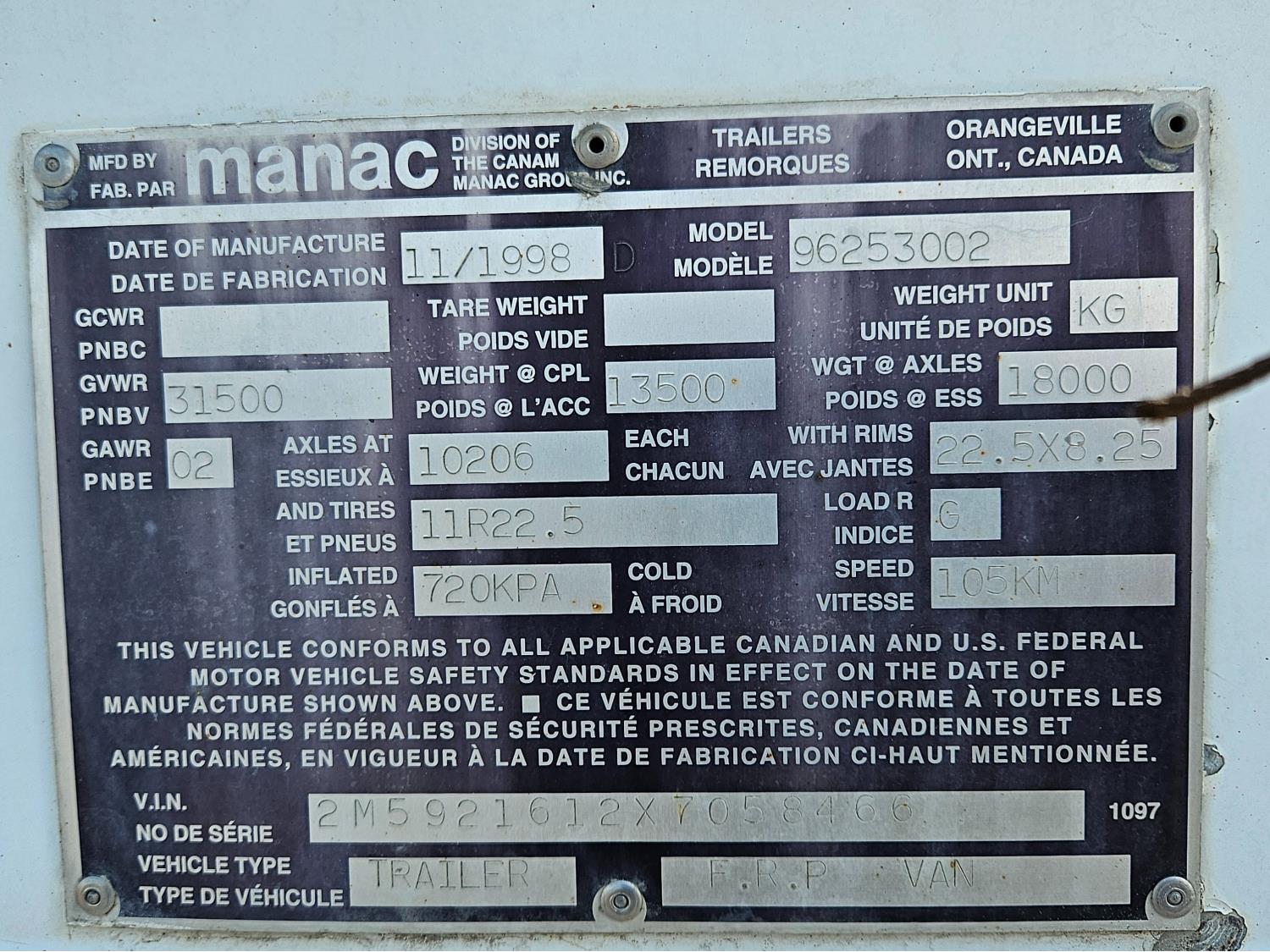 321 1999 Manac 53 Ft T/A Van Trailer