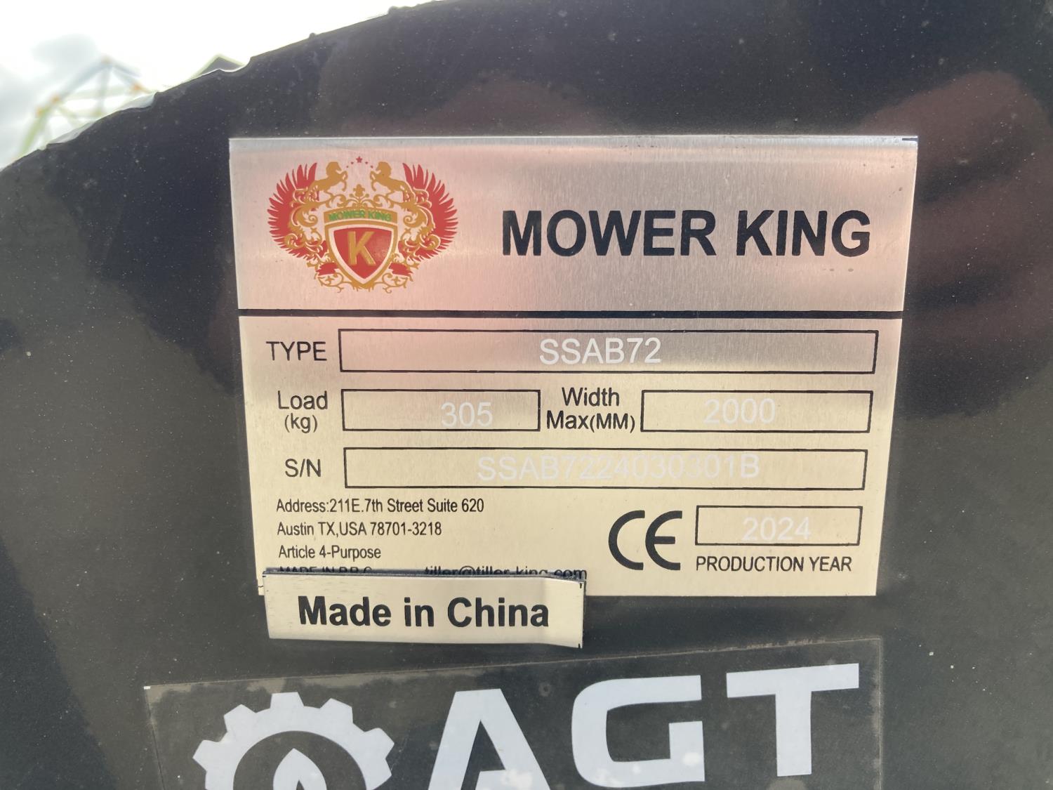475 2024 Mower King AGT-SSAB72 72 Inch Skid Steer Hydraulic Rotary Angle Broom (Unused)