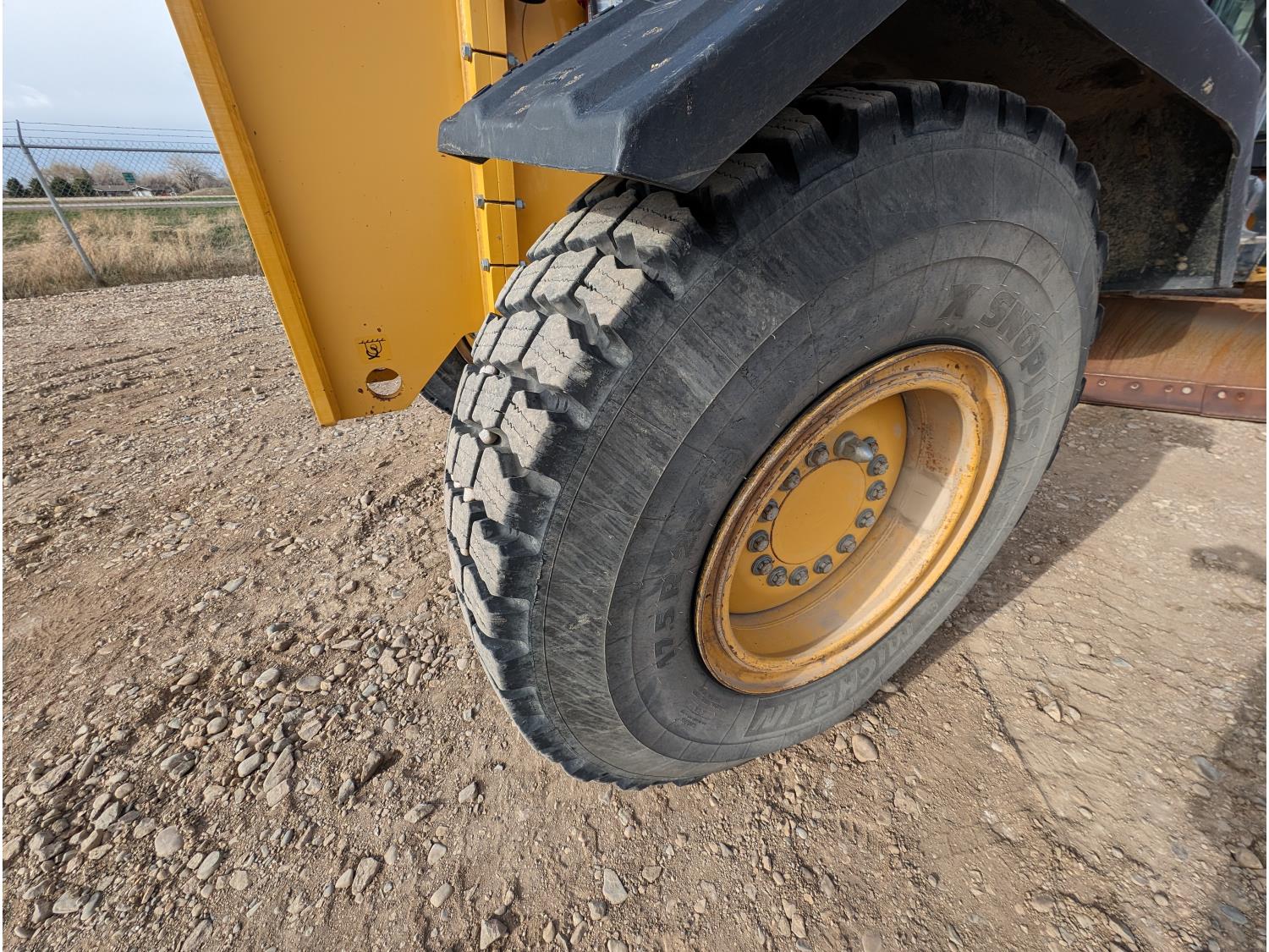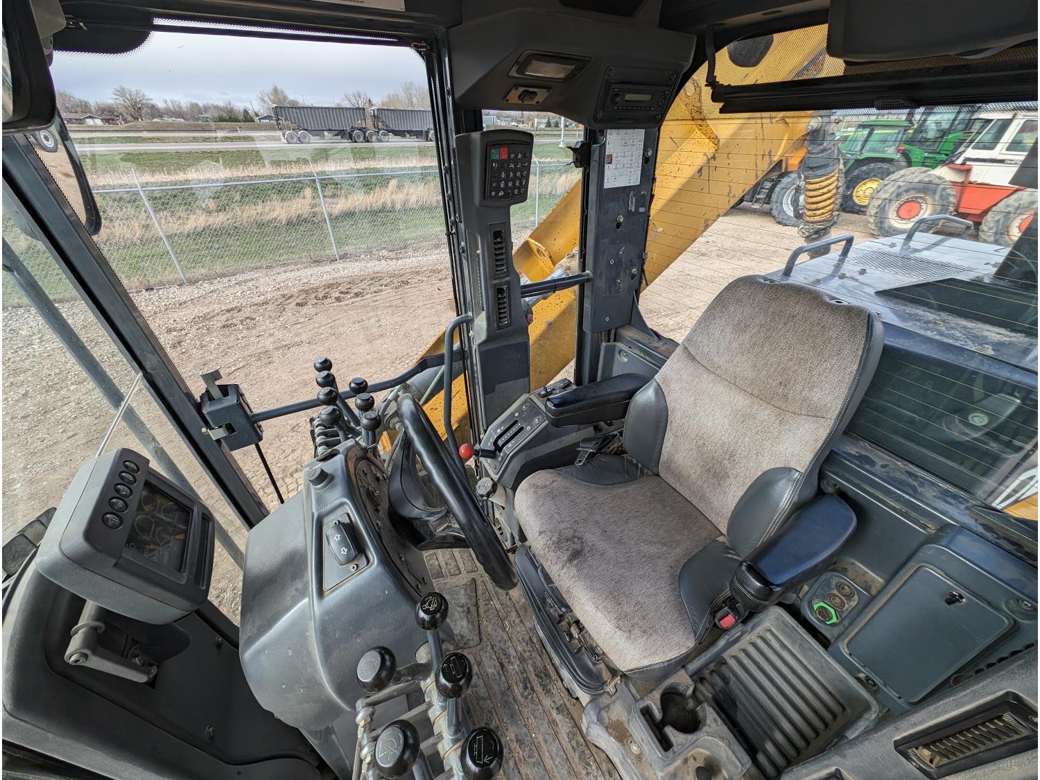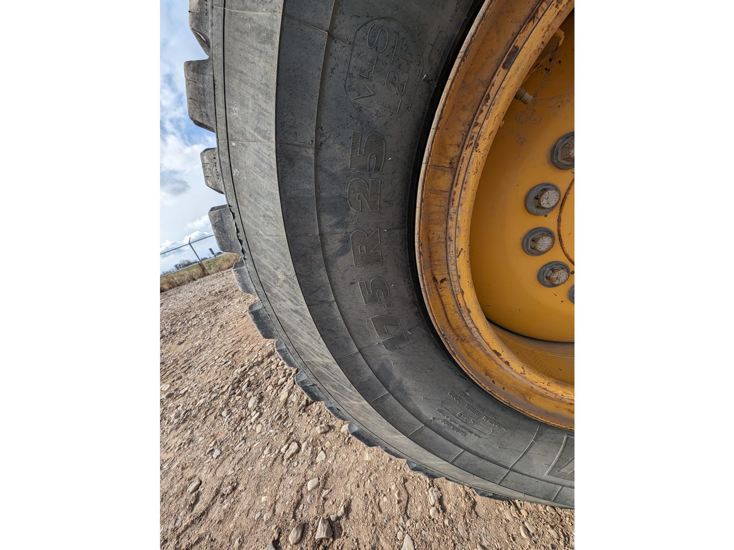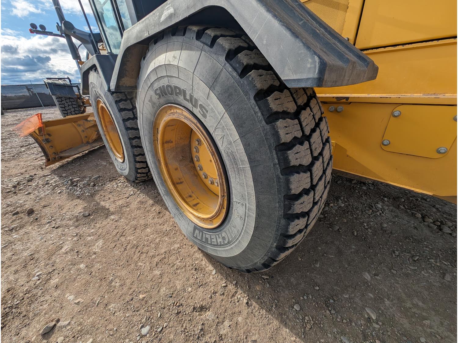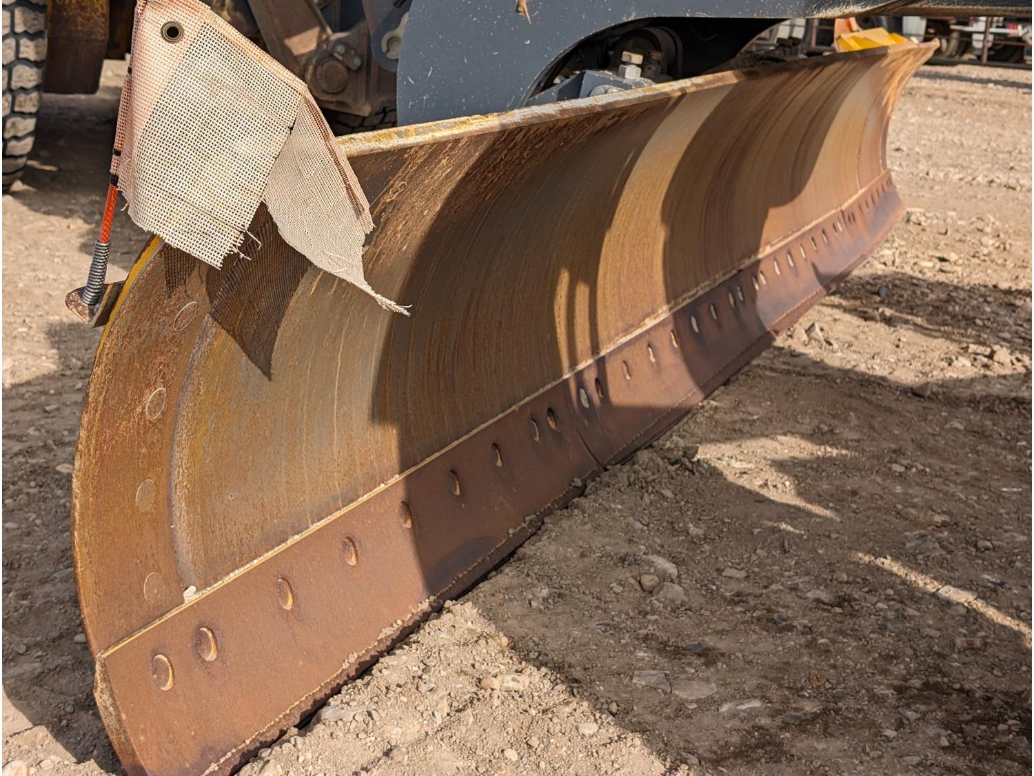 Enclosed cab, A/C, air ride seat, differential lock, 14 Ft moldboard, 2 Ft moldboard extensions, rear ripper / scarifier, front auxiliary hydraulics, snow wing, 17.5R25 tires