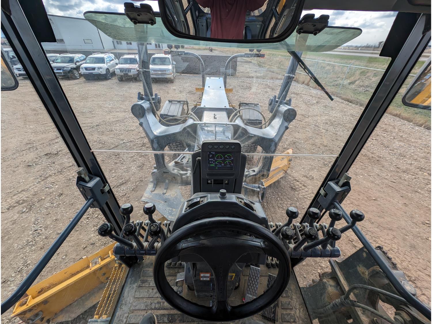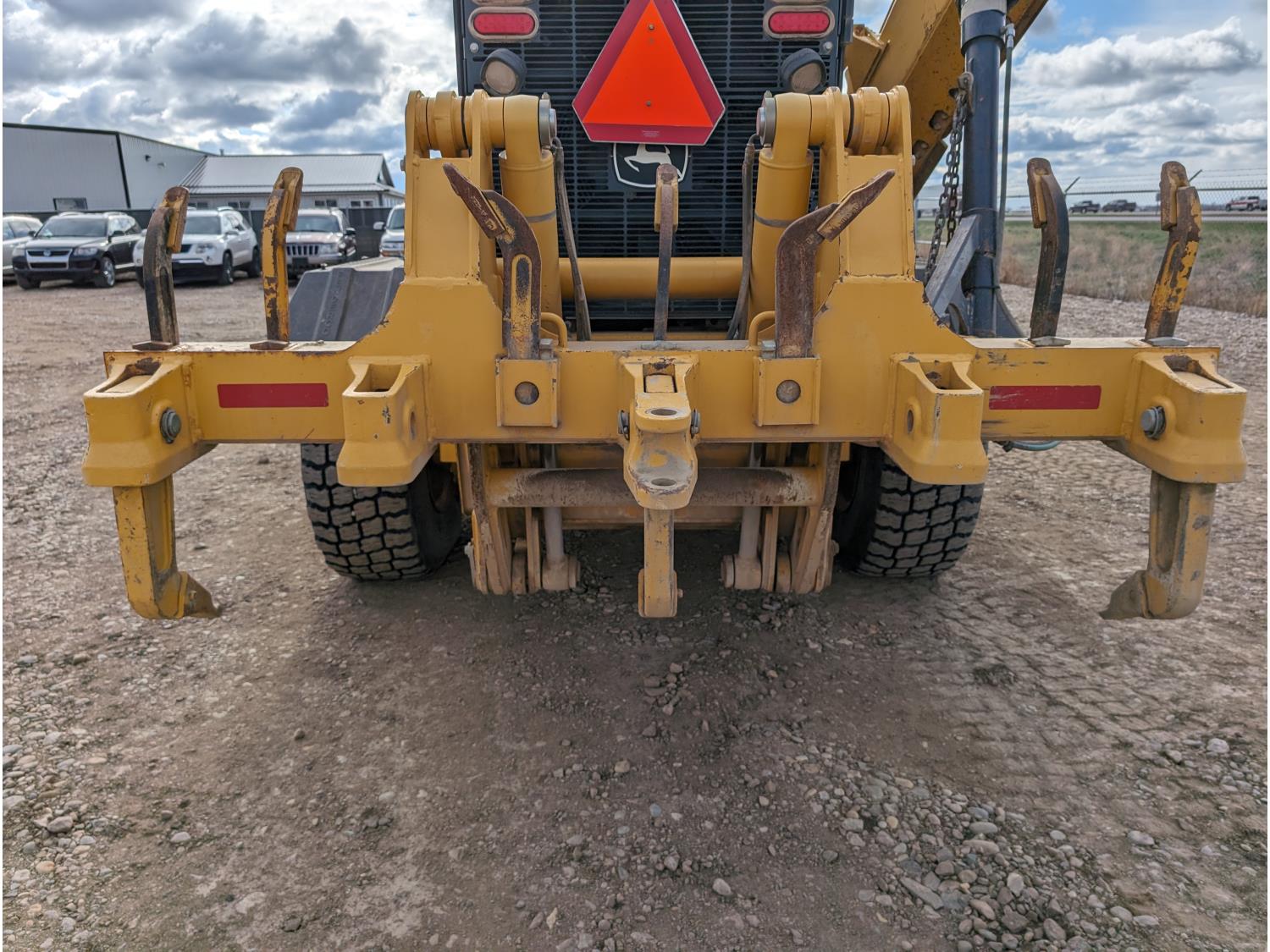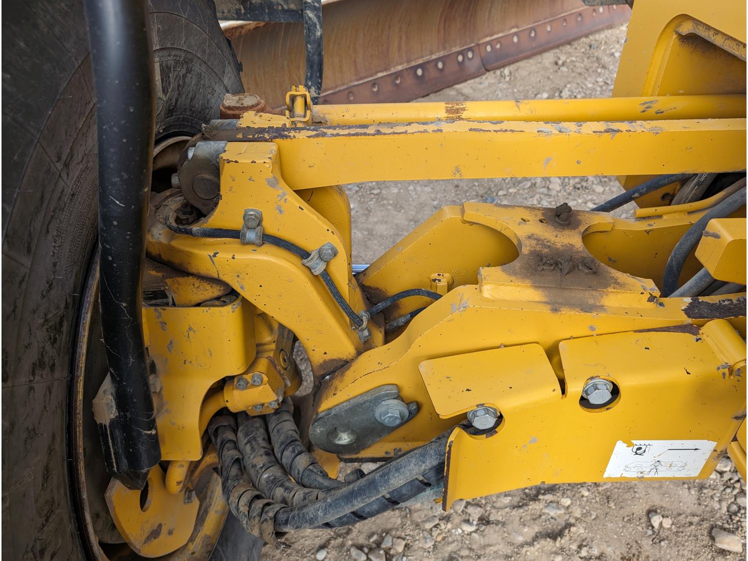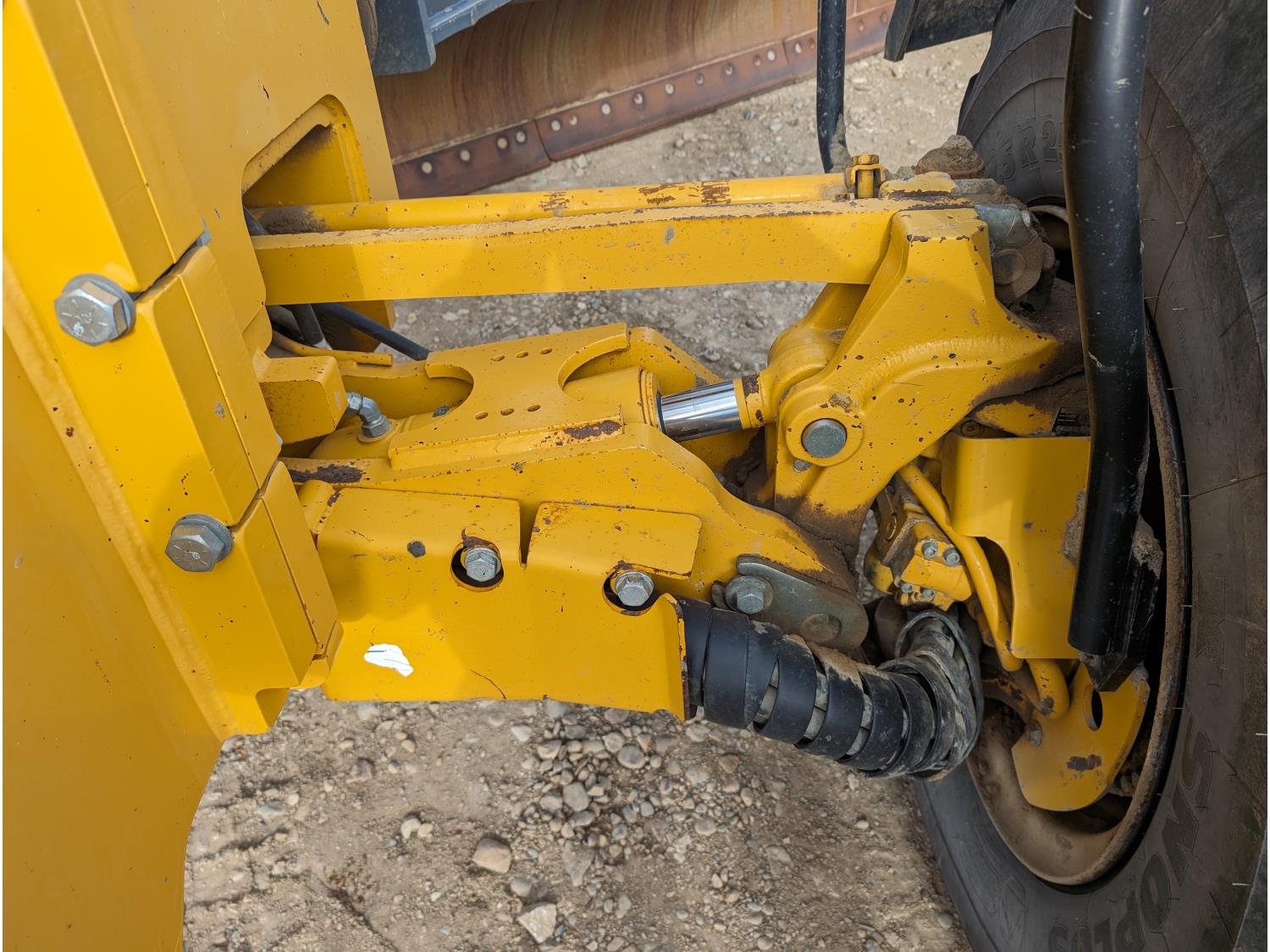 Enclosed cab, A/C, air ride seat, differential lock, 14 Ft moldboard, 2 Ft moldboard extensions, rear ripper / scarifier, front auxiliary hydraulics, snow wing, 17.5R25 tires