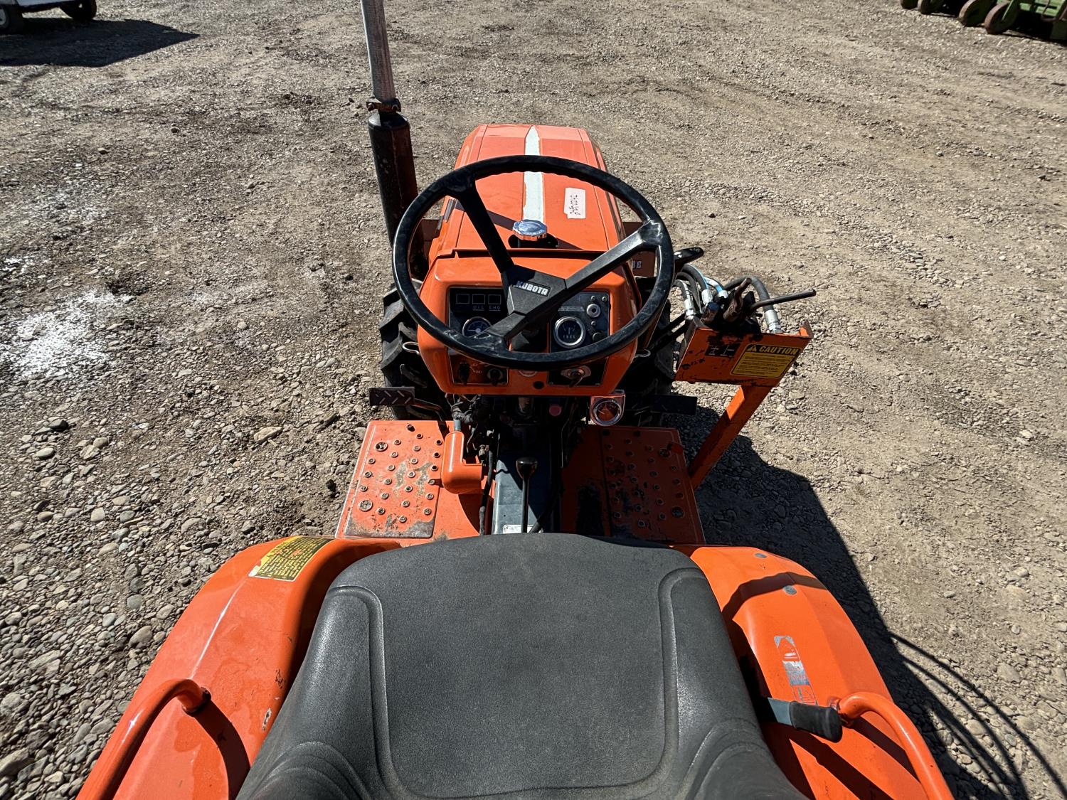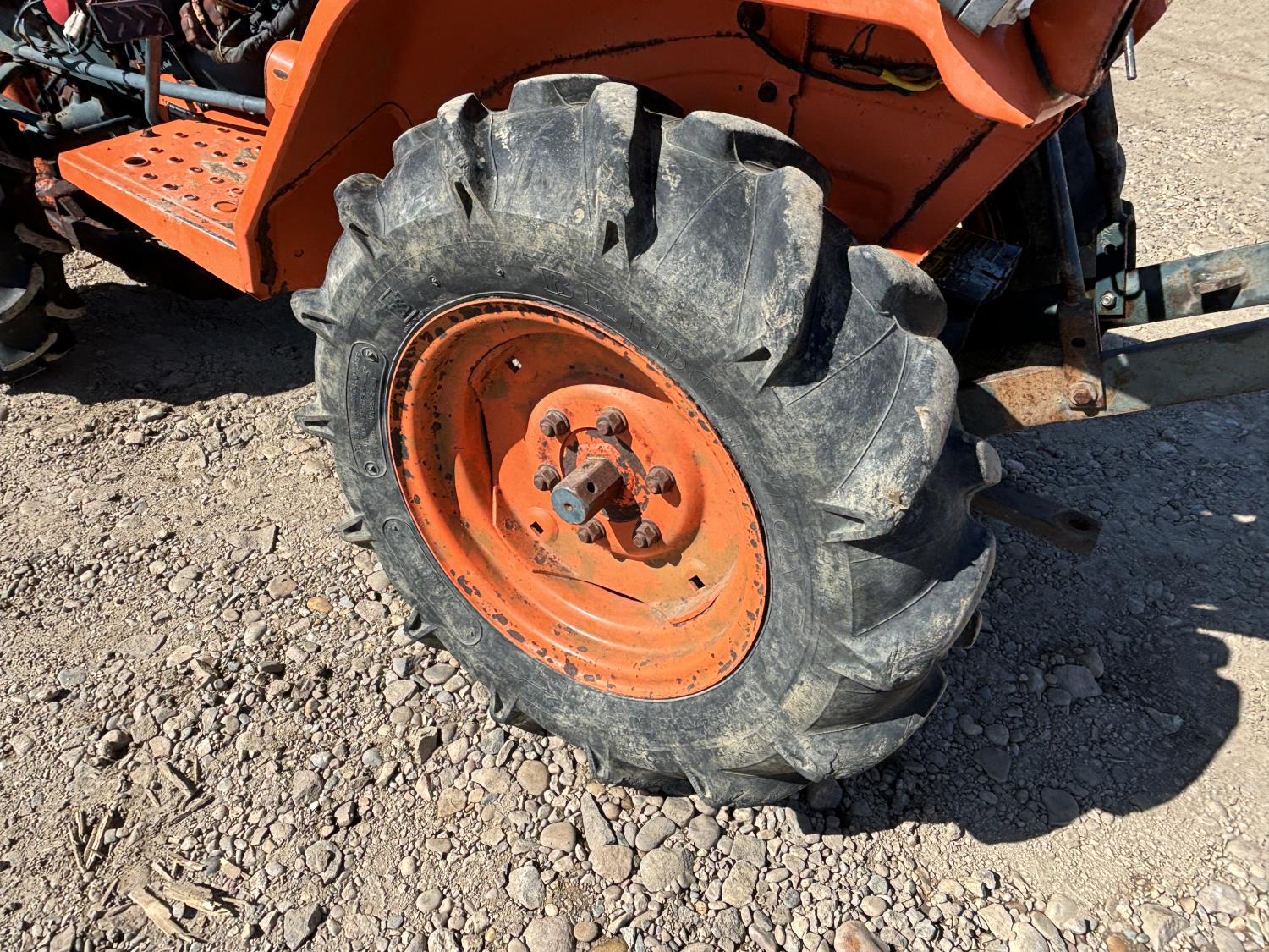 Kubota 0.9 L 3 cylinder 15 HP, diesel engine, 12.5 PTO HP, 3 speed manual transmission, open station platform, 48 inch 2 way blade, 540 PTO, 3 point hitch, 8-6 front tires, 6.00-12 rear tires