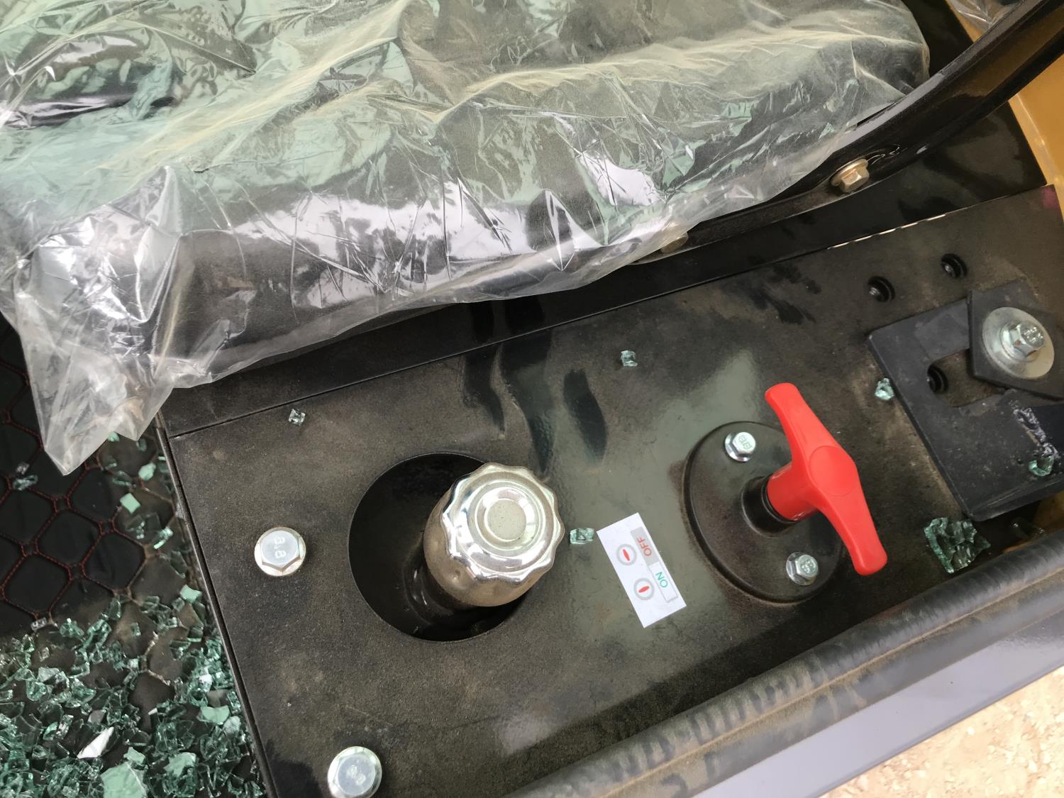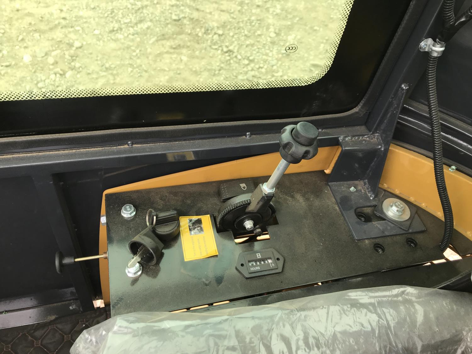 Enclosed cab, gas engine, 17 inch dig bucket, manual coupler, manual thumb, 31 inch stick, backfill blade, 7 inch rubber tracks