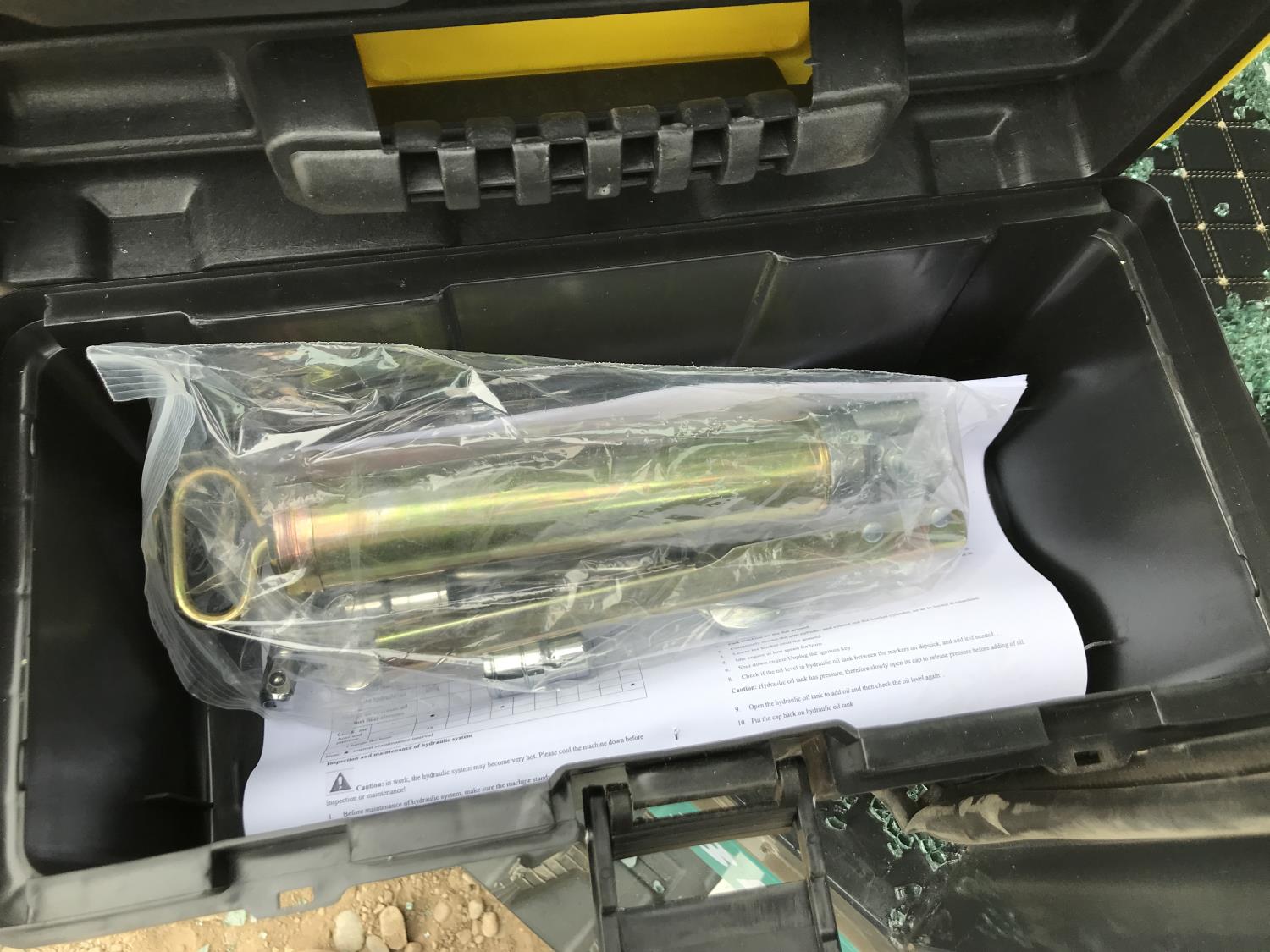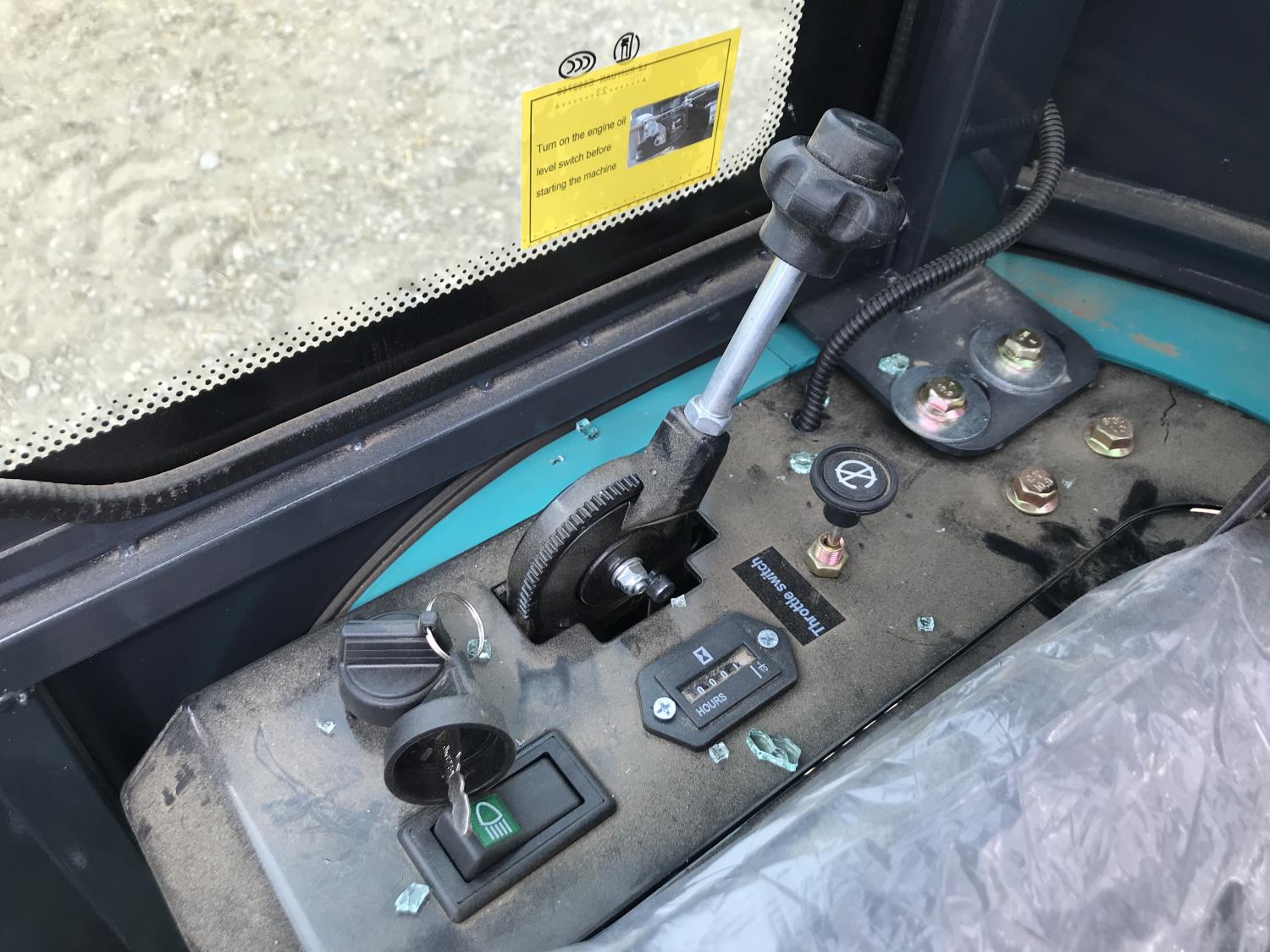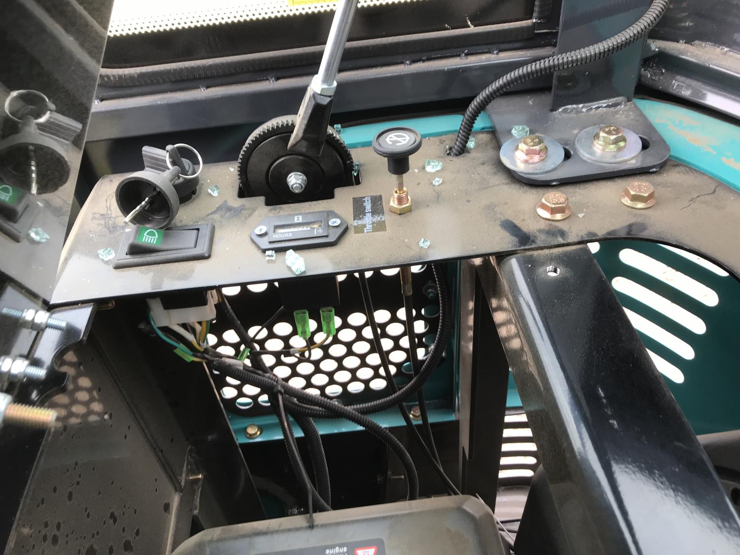 Enclosed cab, gas engine, 17 inch dig bucket, manual coupler, manual thumb, 28 inch stick, 7 inch rubber tracks,