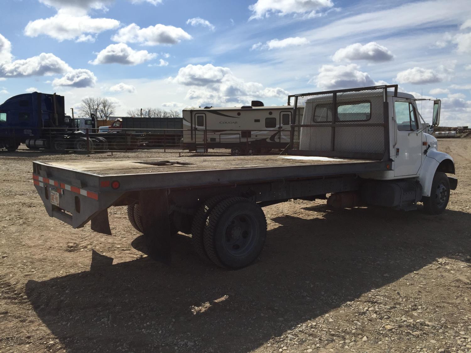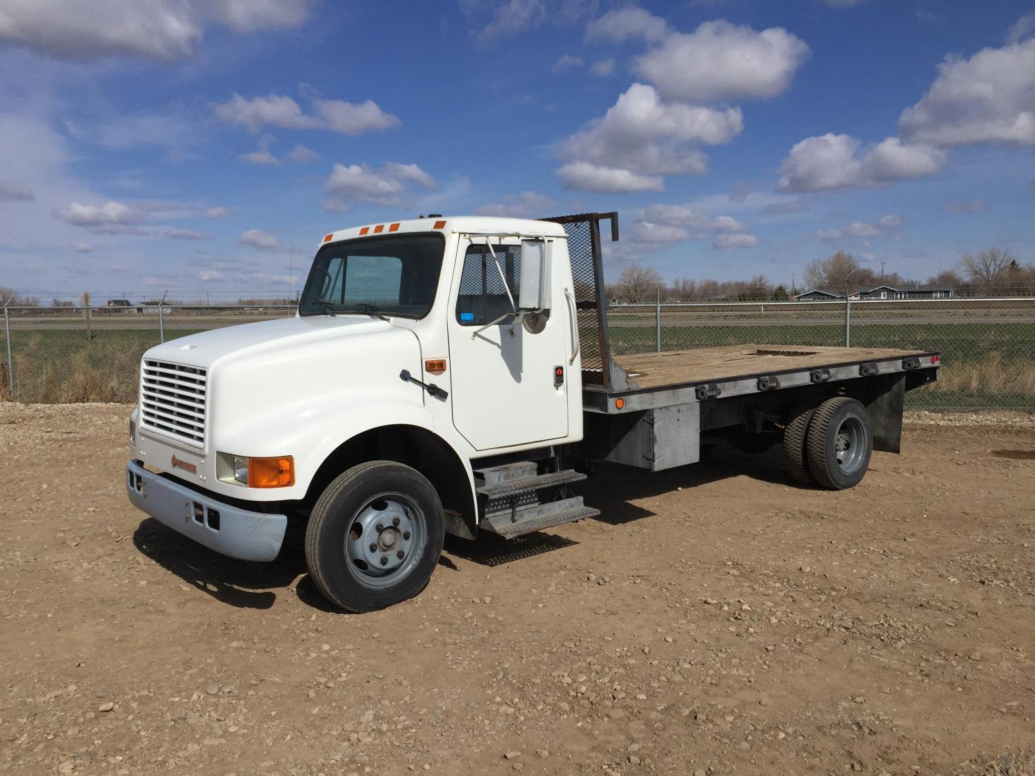 256 1990 International 4600 S/A Day Cab Flat Deck Truck