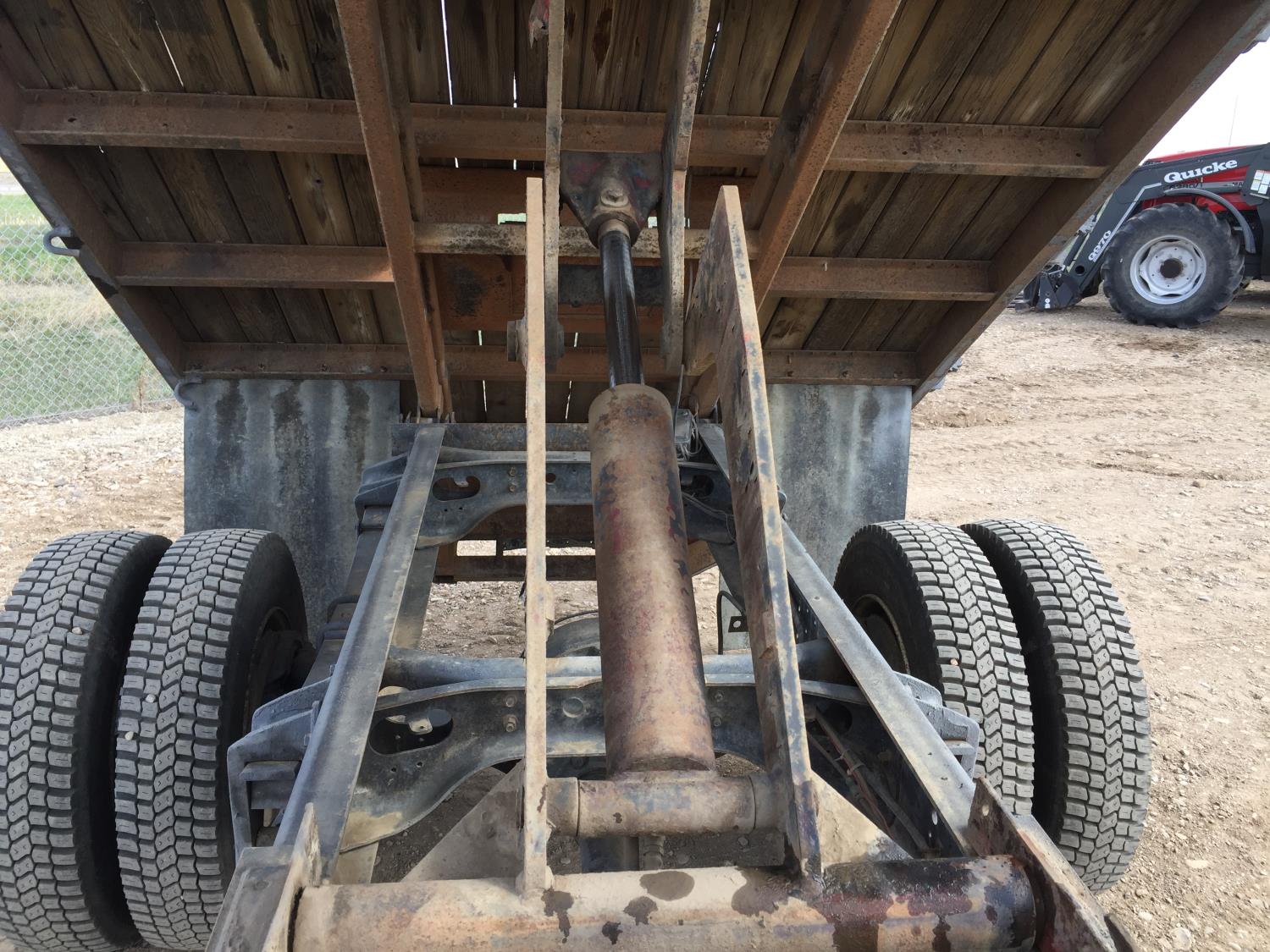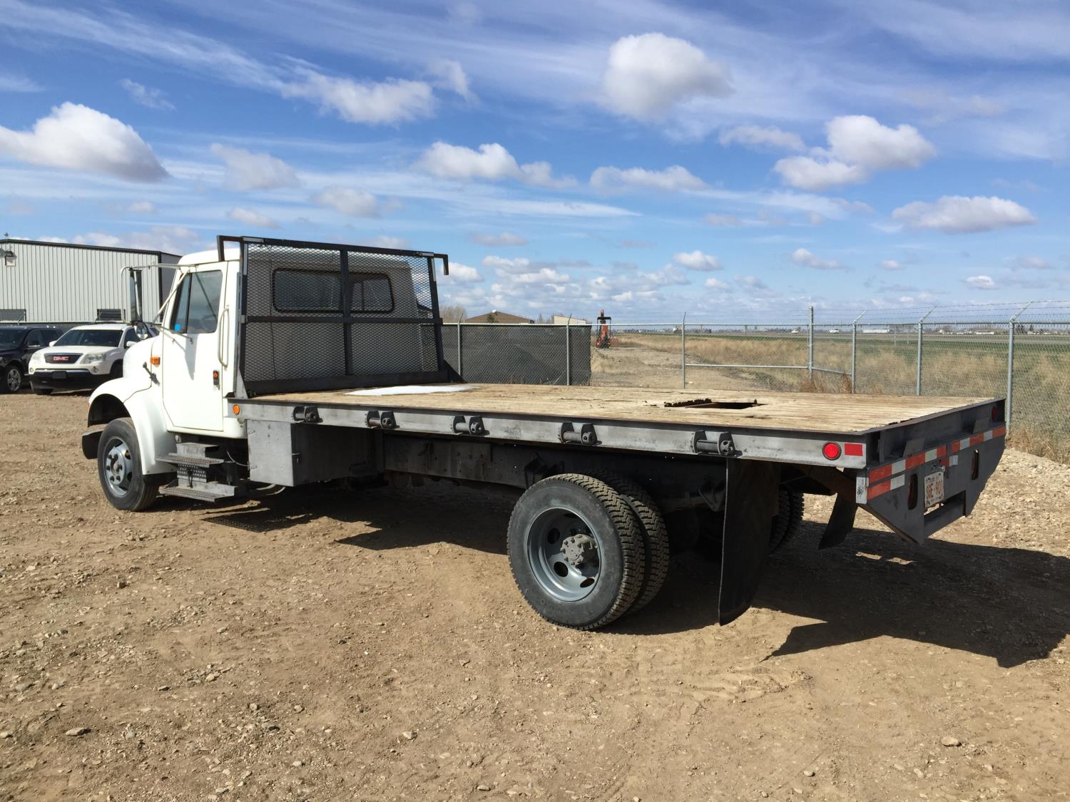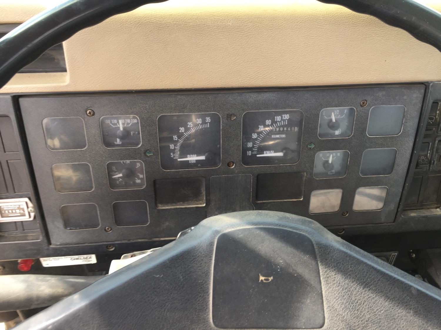 International 7.3 L V8 diesel engine, electric engine block heater, 5 speed manual transmission, radio, hydraulic wet kit, steel headache rack, steel tool boxes, 16 ft x 92 inch deck, hoist, spring suspension, 4.33 ratio, 199 inch WB, 6000 lb front axle, 15500 lb rear axle, 8R19.5 tires