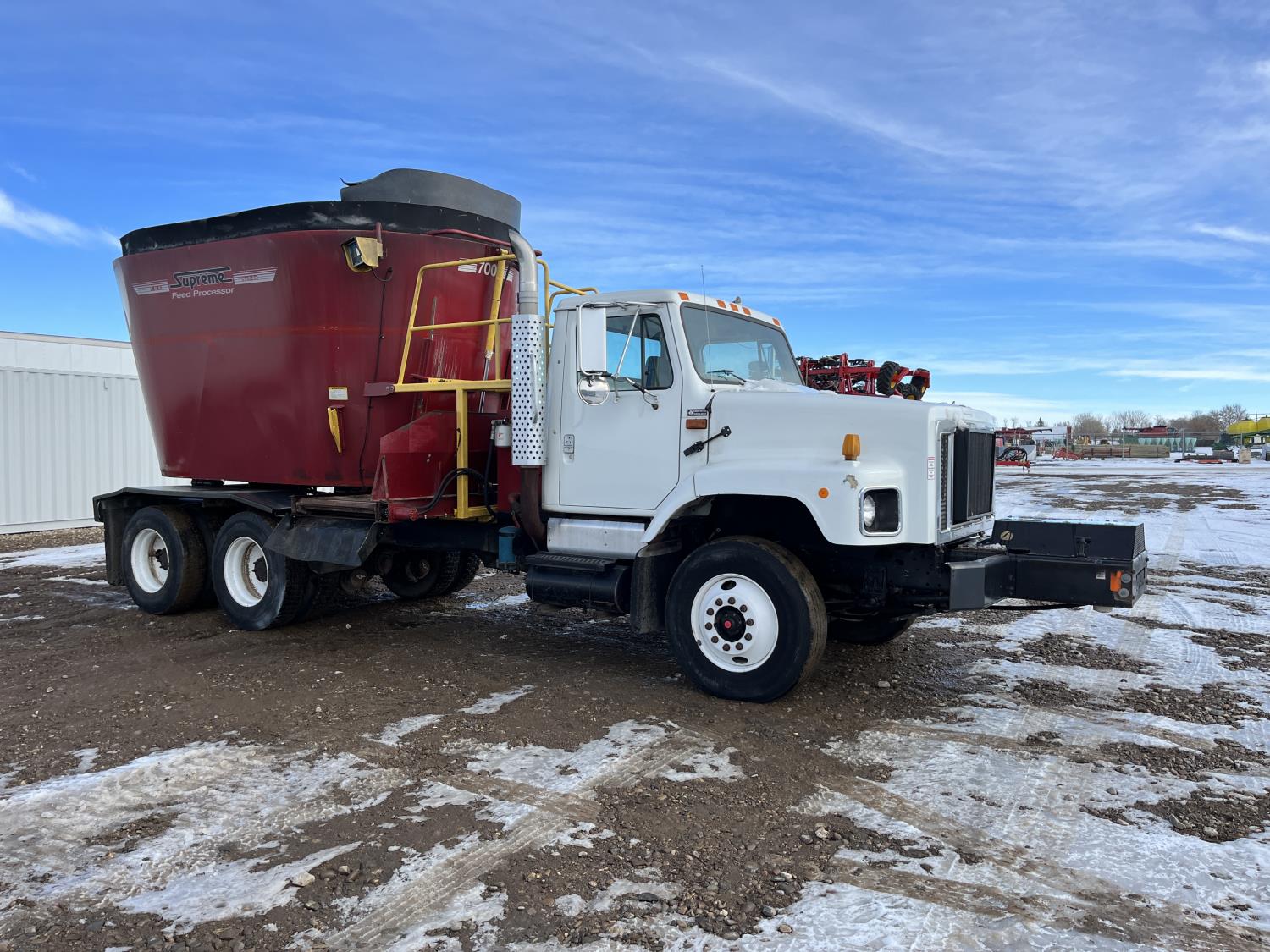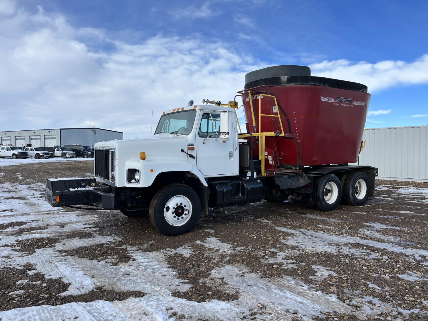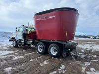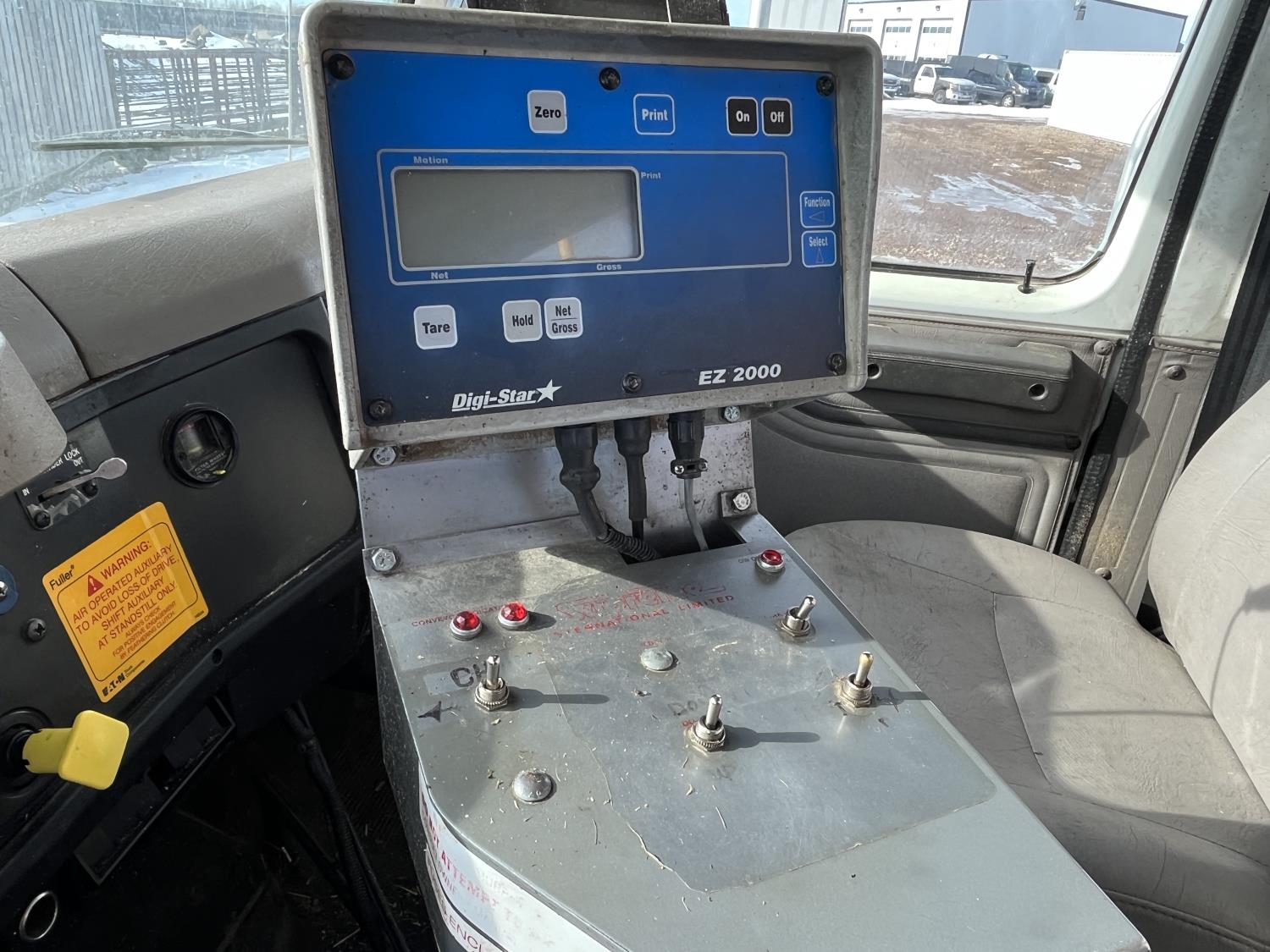 International 7.6 L, 6 cylinder diesel engine, auto transmission, air conditioning, cruise control, leather seats, direct drive hydraulic wet kit, Supreme Feed Processor, dual vertical cutting augers, 102 X 176 X 92 inch feed bin, air ride suspension, 208 inch WB, 11R22.5 tires