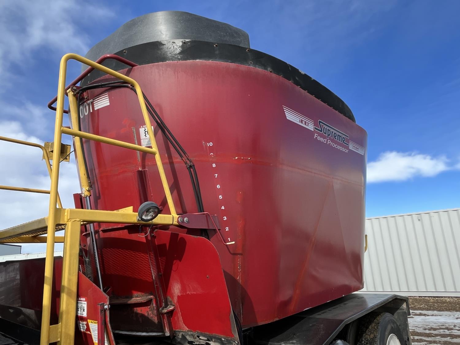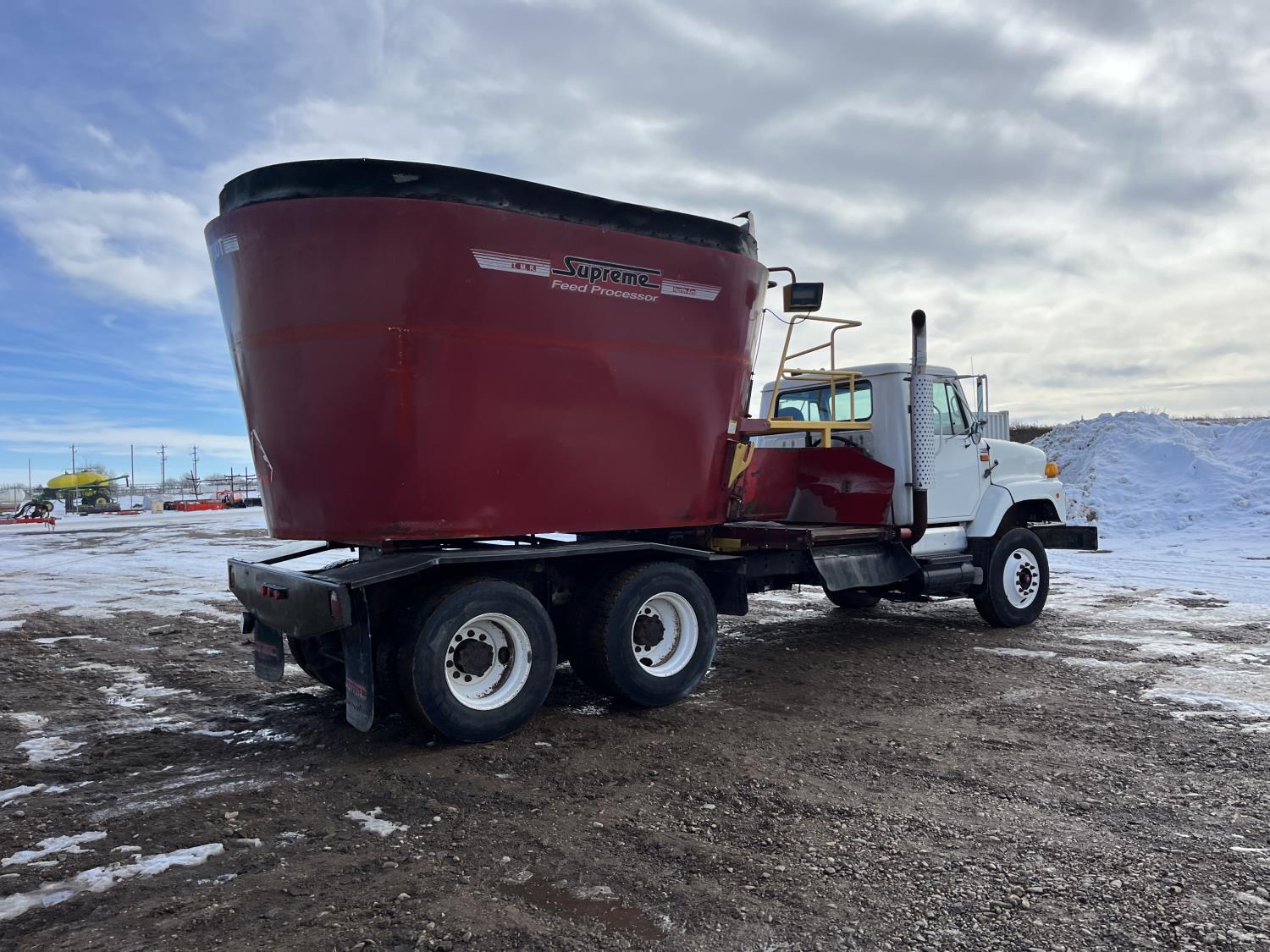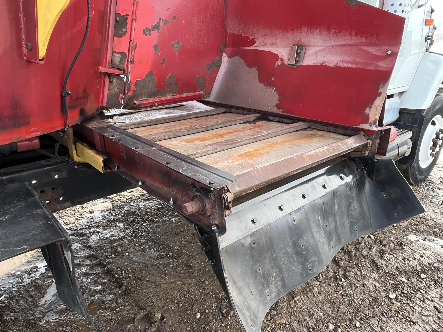 International 7.6 L, 6 cylinder diesel engine, auto transmission, air conditioning, cruise control, leather seats, direct drive hydraulic wet kit, Supreme Feed Processor, dual vertical cutting augers, 102 X 176 X 92 inch feed bin, air ride suspension, 208 inch WB, 11R22.5 tires