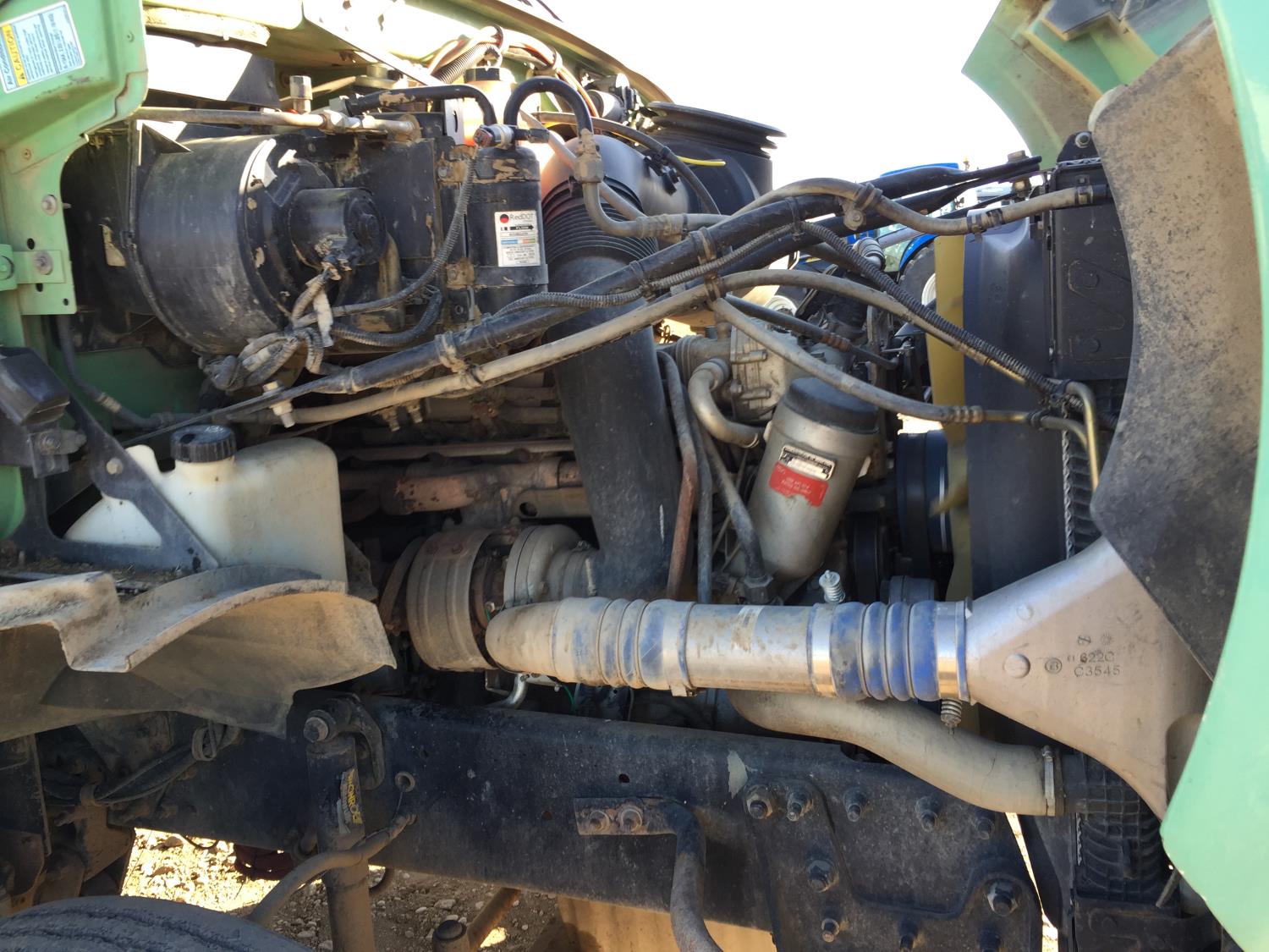 Mercedes OM460 450 HP engine, Eaton Fuller 18 speed manual transmission, air ride suspension, 13,200 lb front axle, 40,000 lb rear axles, diff lock, 200 inch WB, 11R24.5 tires