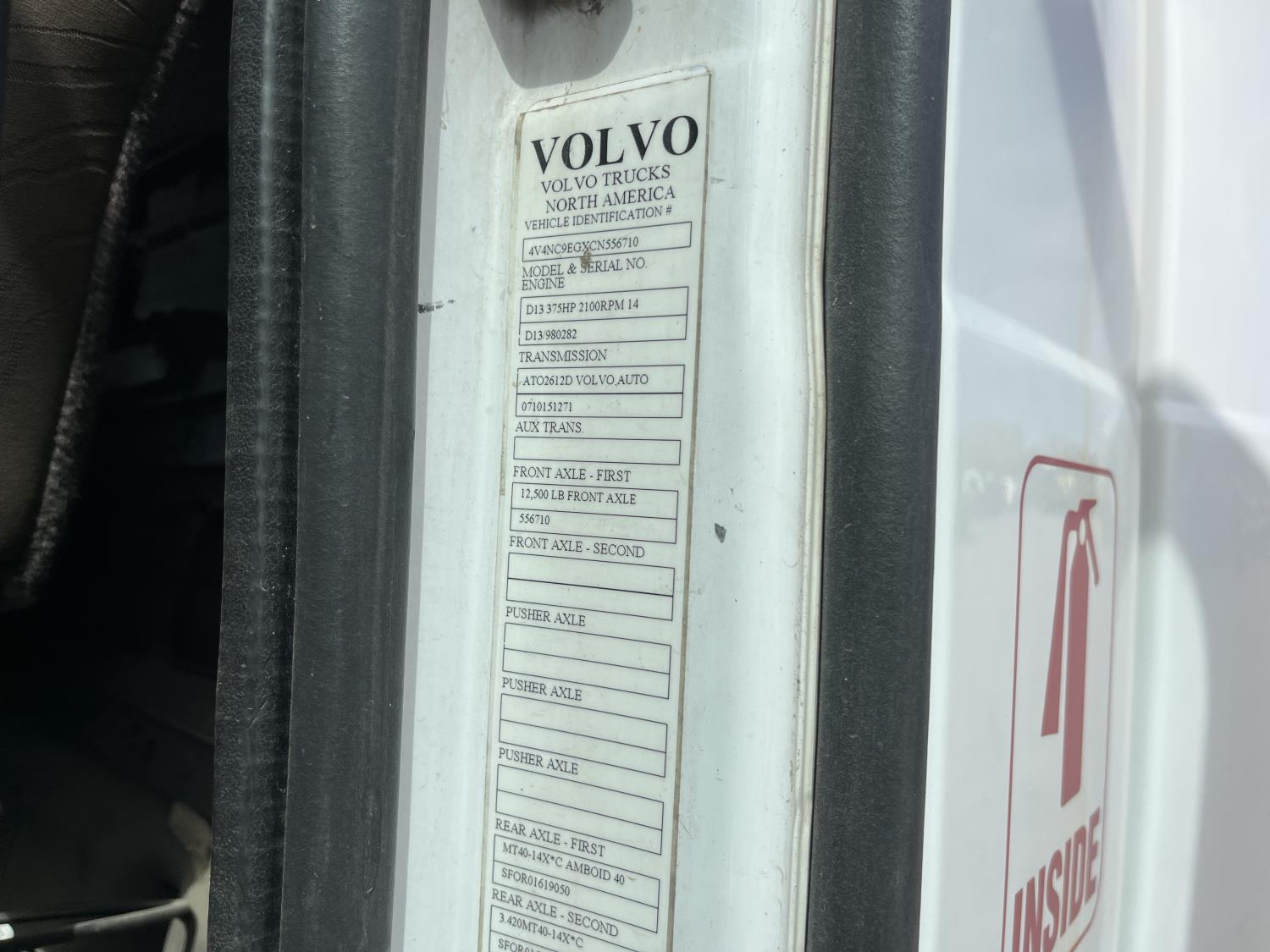 270 2012 Volvo VNL T/A Day Cab Truck Tractor (Inoperable)