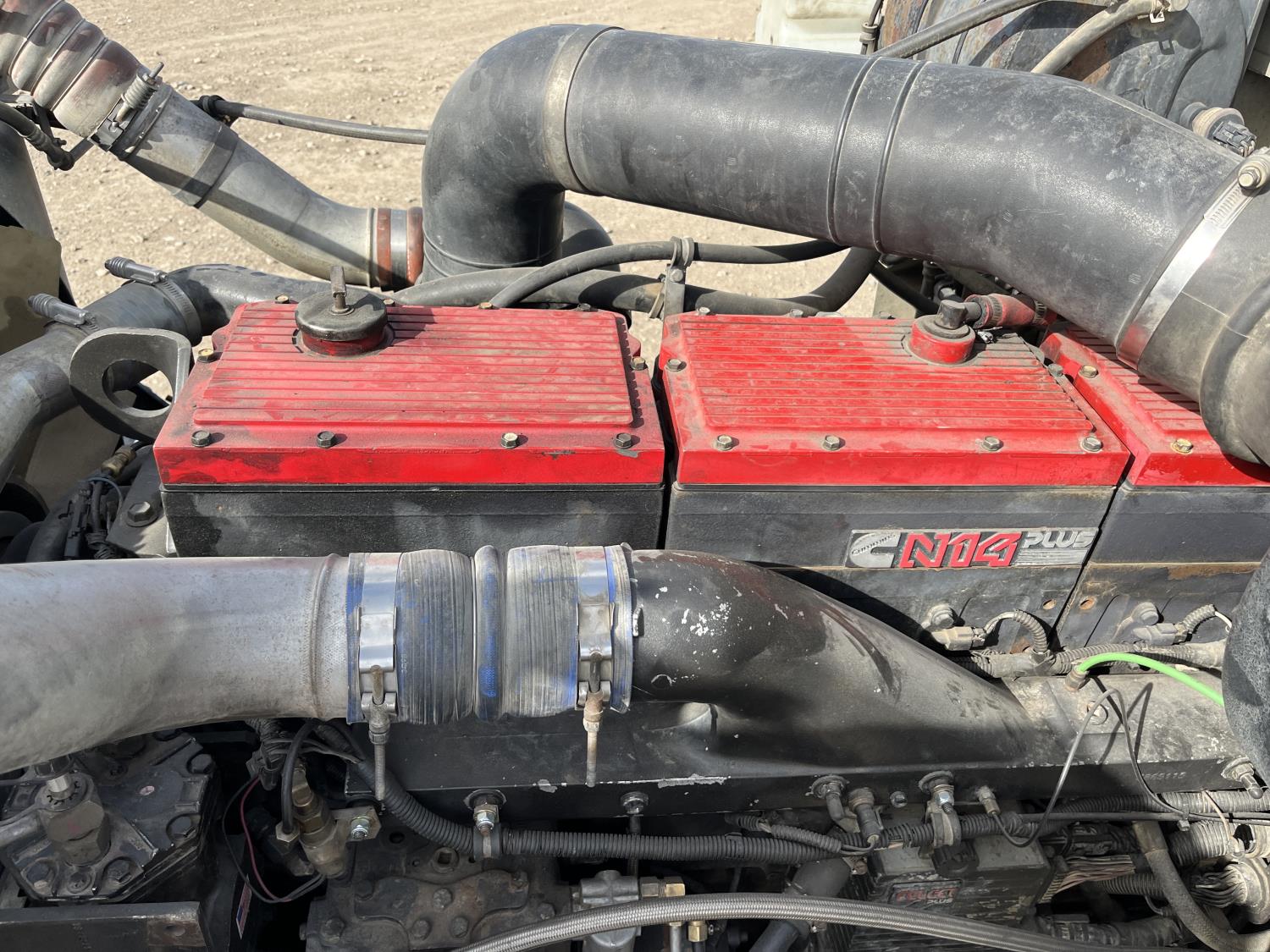 Cummins N14 460 HP engine, Eaton Fuller 18 speed manual transmission, 72 inch sleeper, A/C, cruise control, air ride suspension, 12,000 lb front axle, 40,000 lb rear axles, 244 inch WB, power divider lock, all aluminum wheels, 11R24.5 tires