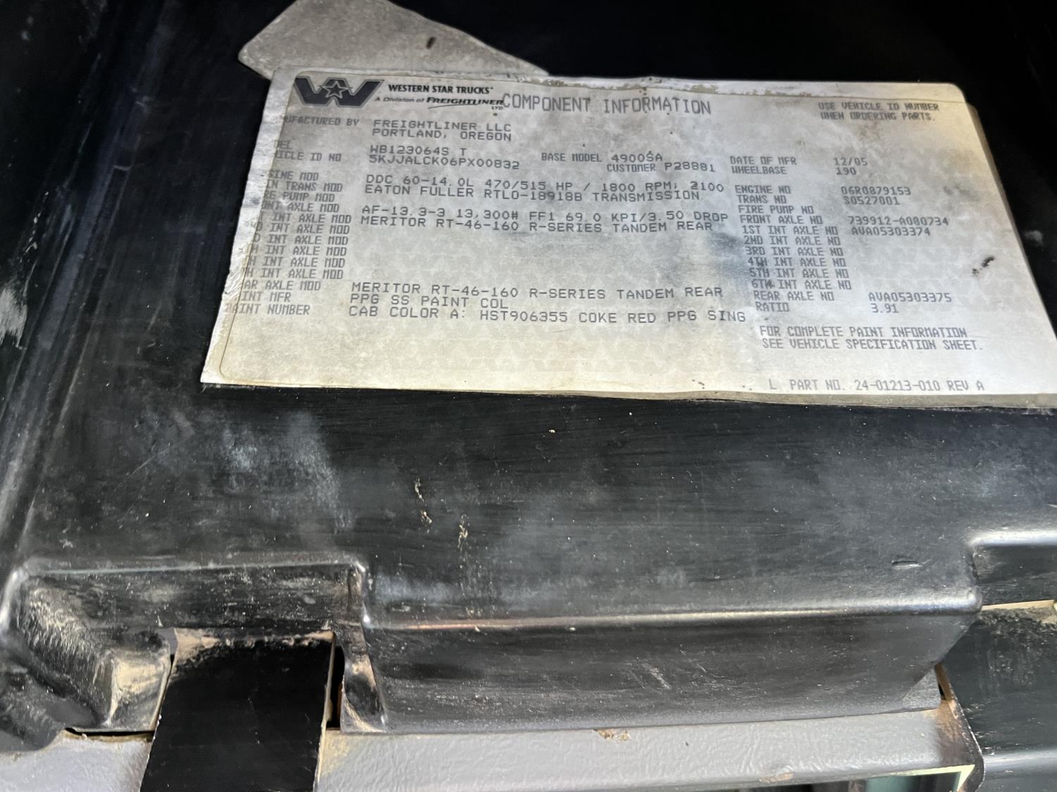 Detroit DDC60 515 HP engine, Eaton Fuller 18 speed manual transmission, 32 inch sleeper, hydraulic wet kit, air ride suspension, 13,300 lb front axle, 46,000 lb rear axles, full lockers, 192 inch WB, 11R22.5 tires