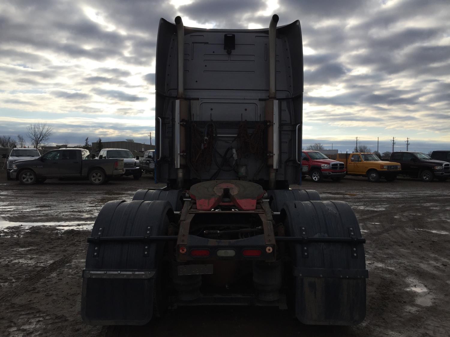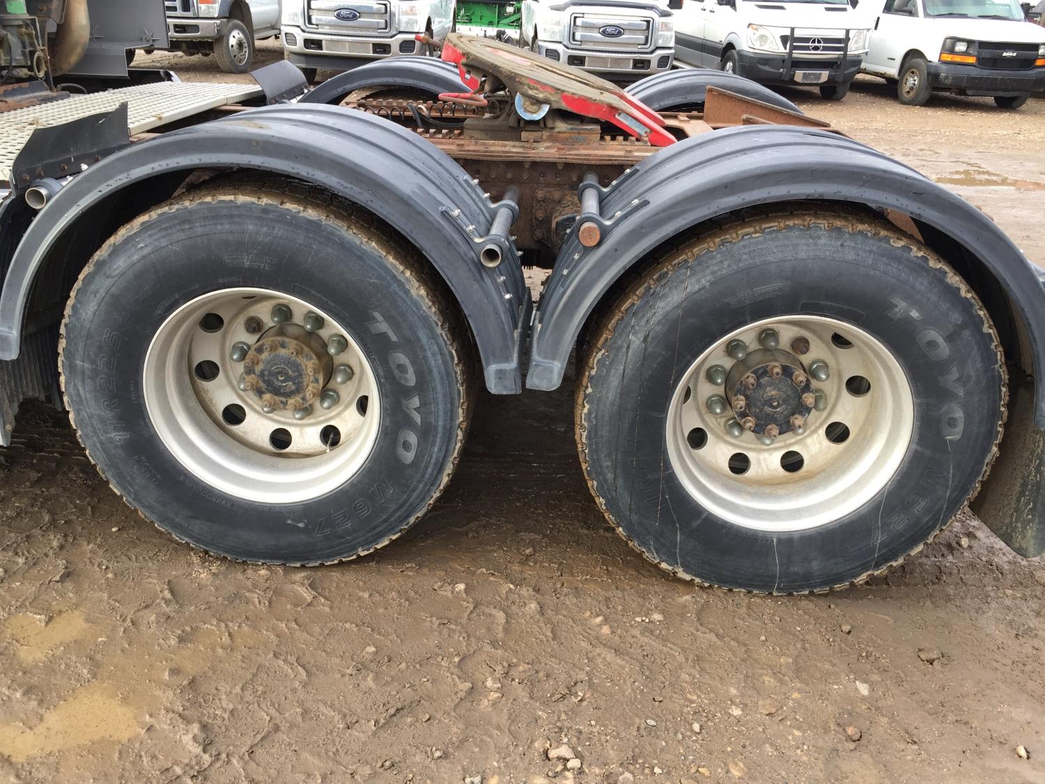Cummins ISX 500 HP engine, Eaton Fuller 13 speed manual transmission, high rise sleeper, fridge, bunk beds, moose bumper, 12,500 lb front axle, 40,000 lb rear axles, diff lock, 3.90 ratio, 228 inch WB, 11R22.5 tires