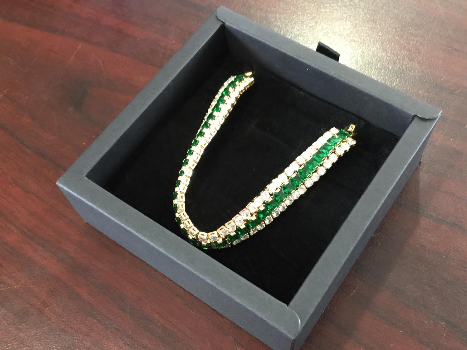 1305 Smartlife 18K Gold Plated 4.0 mm Emerald Princess Bracelet (Unused)