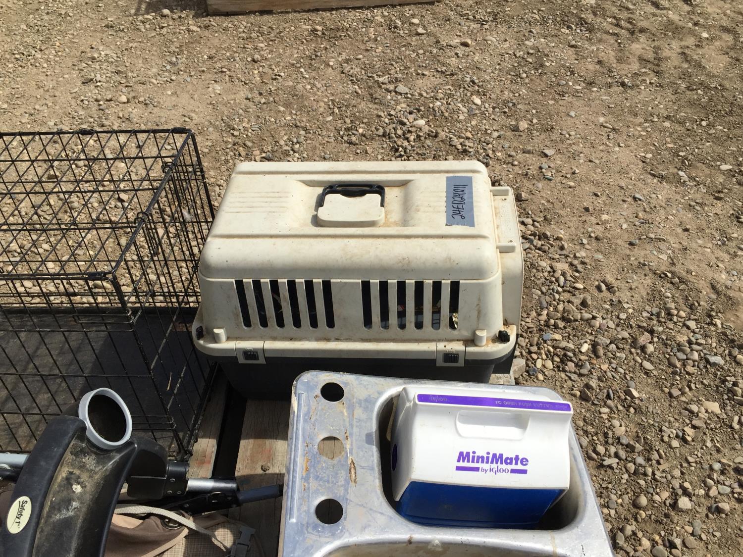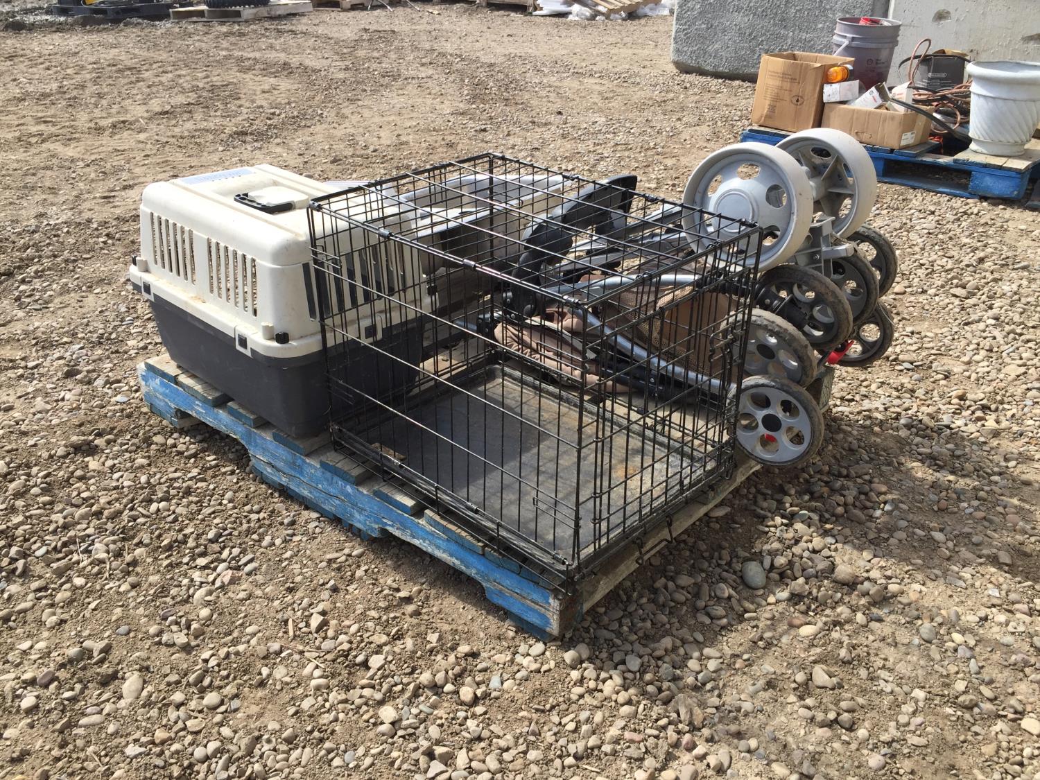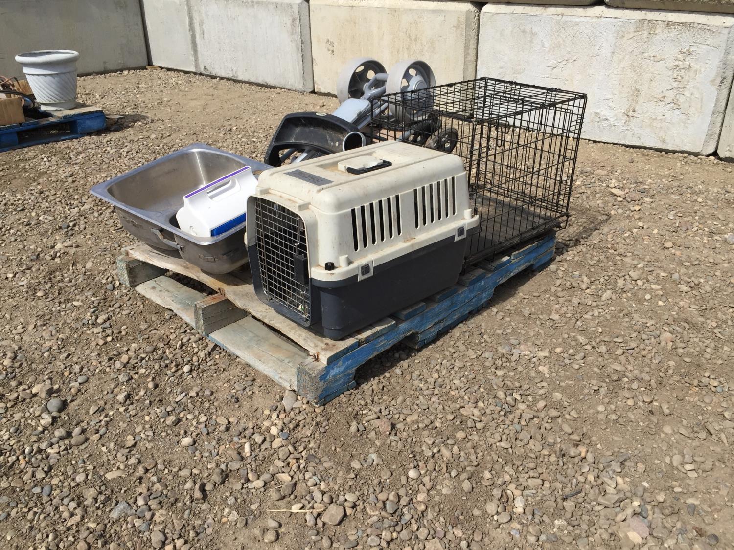1443 (2) Animal Cages w/ Golf Cart and Sink