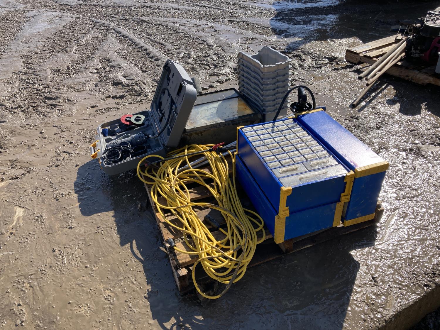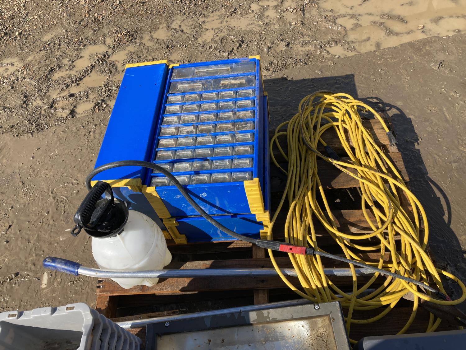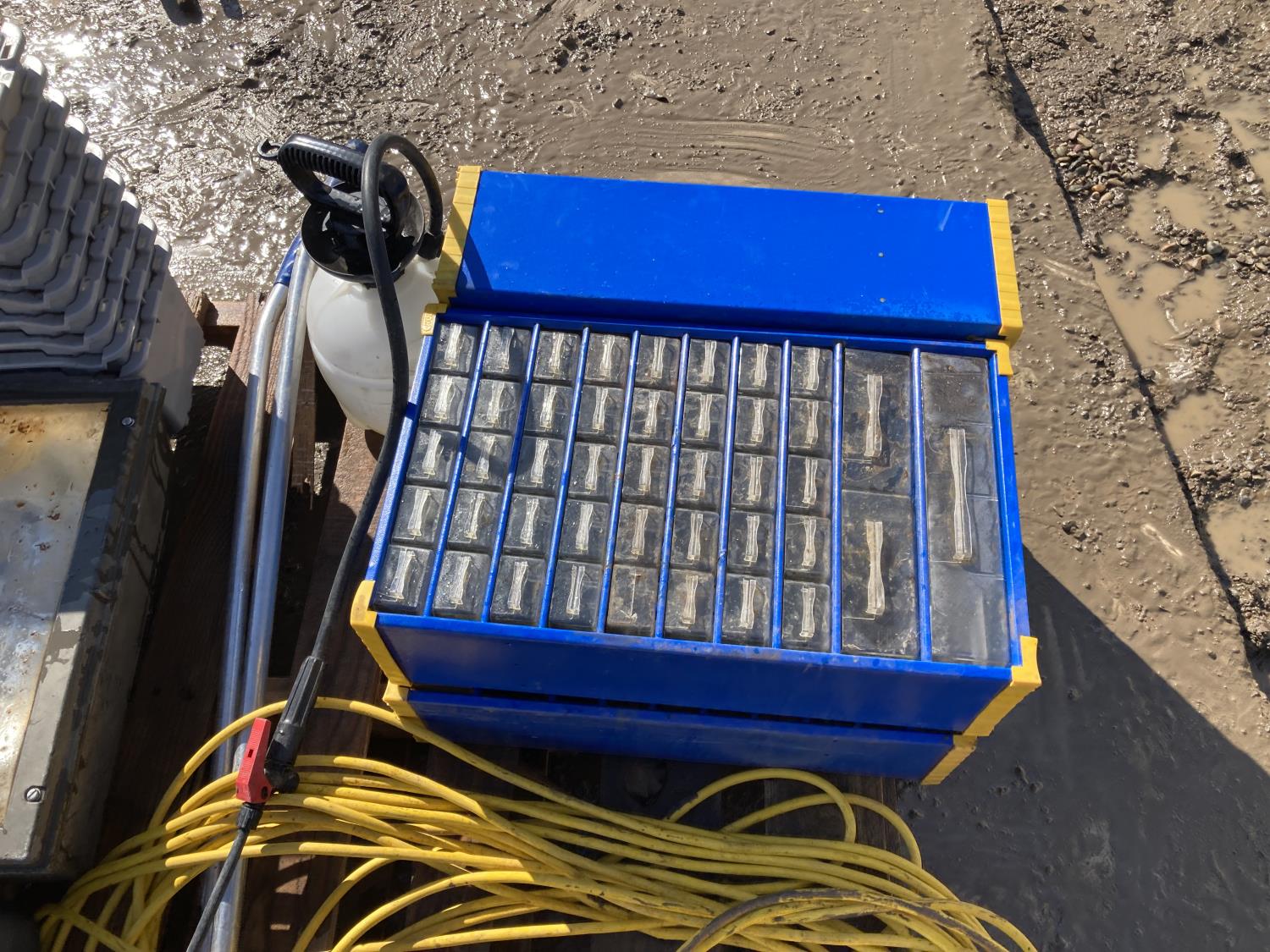 1834 Bolt Bins, Extension Cords, Spray Bottle and Grinder
