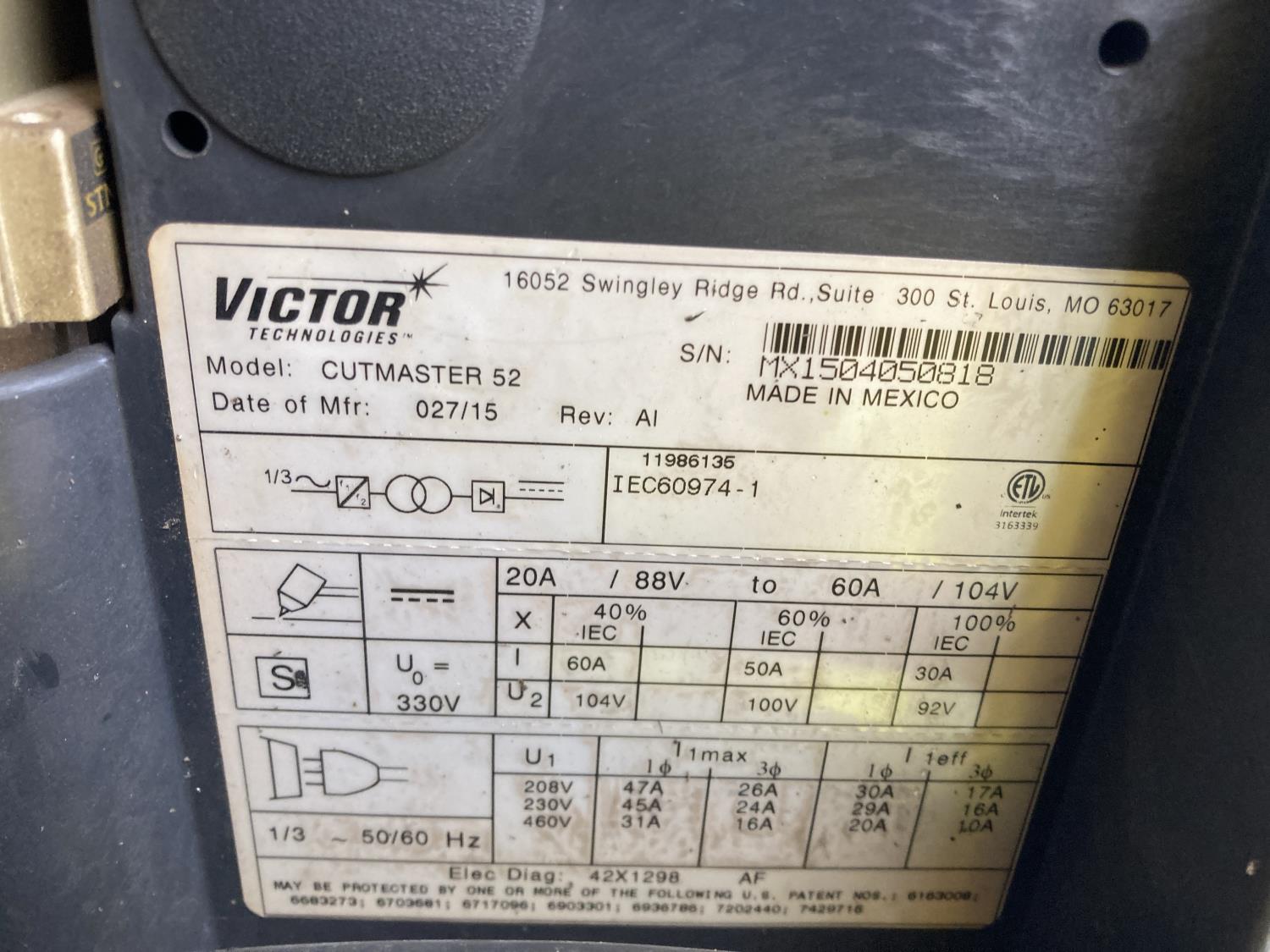1576 Victor Cutmaster 52 Plasma Cutter