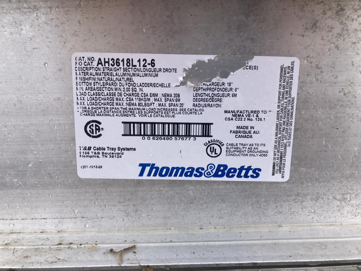 1194 Qty of 18 Inch Aluminum Cable Tray