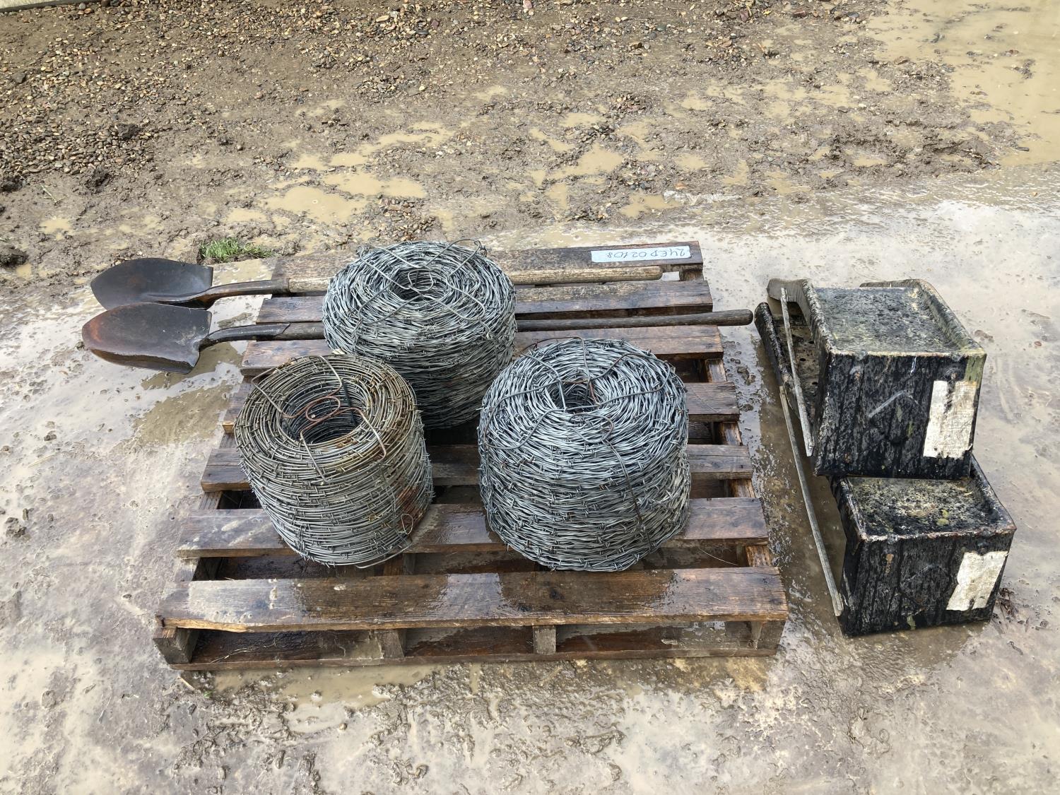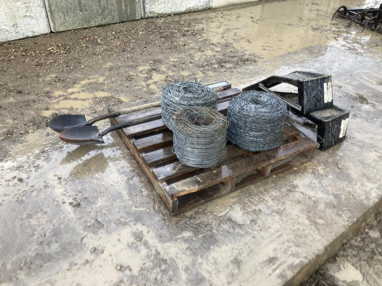 1746 Qty of Barb Wire, Shovels and Car Ramps