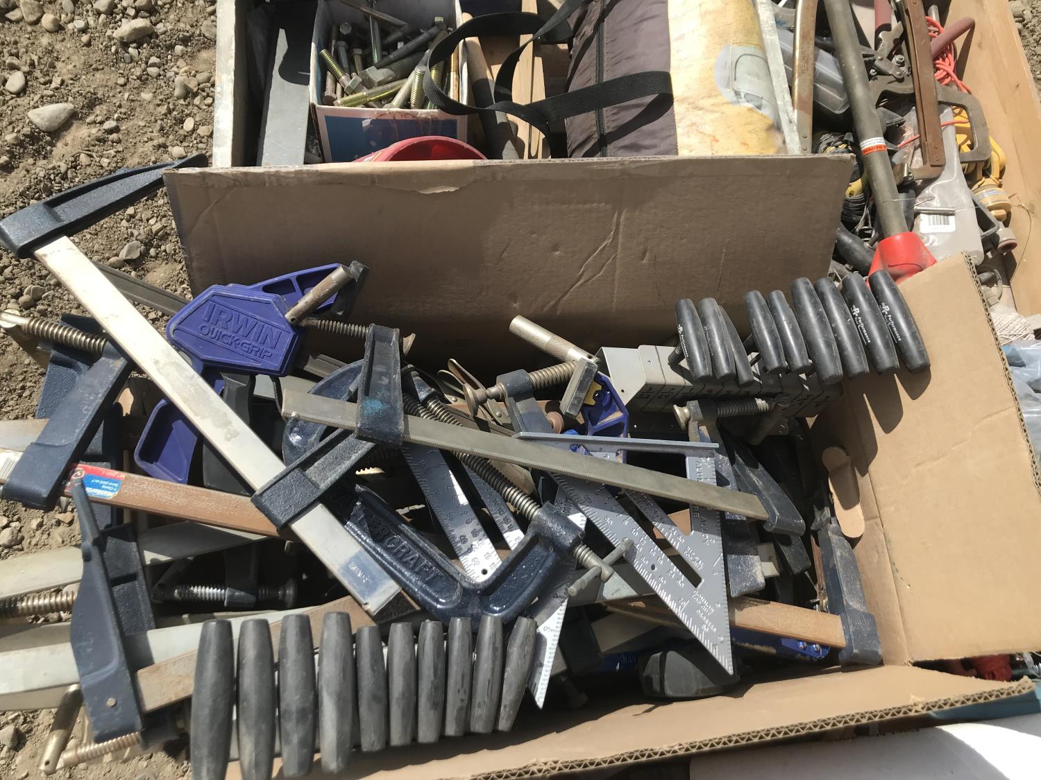Squares, C-clamp, Alan Keys, Bolts, Qty of hand tools