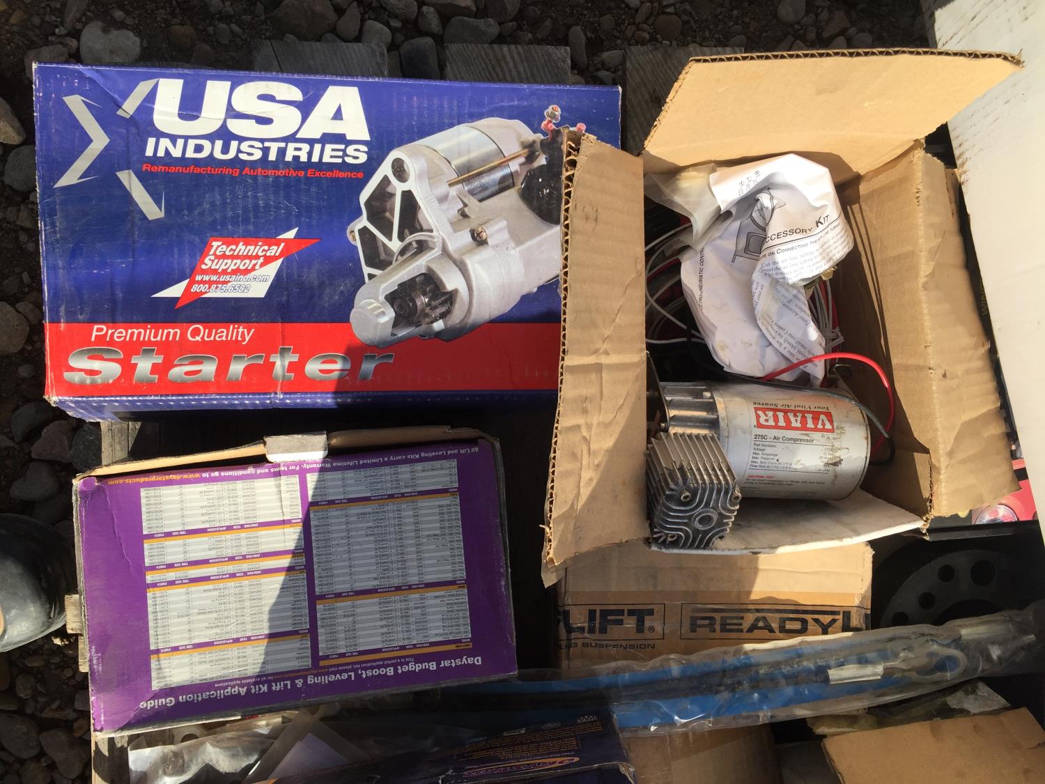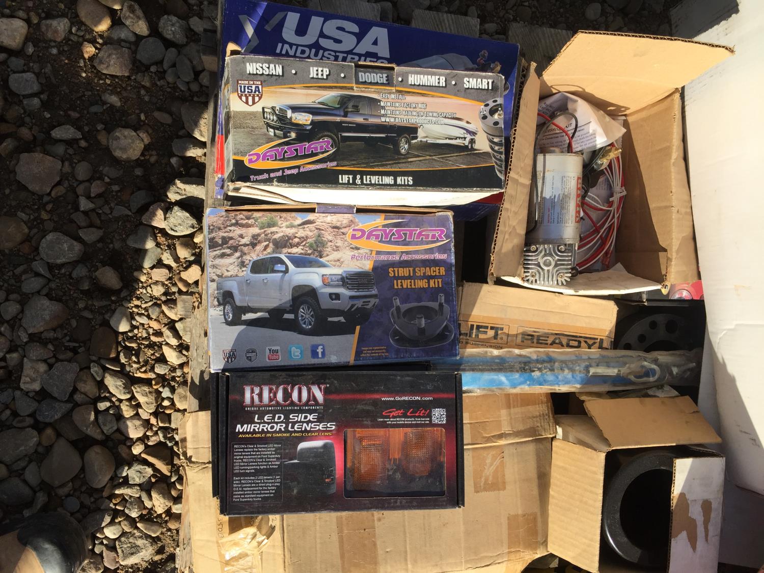 starters, leveling kit, struts, tail lights, headlights,