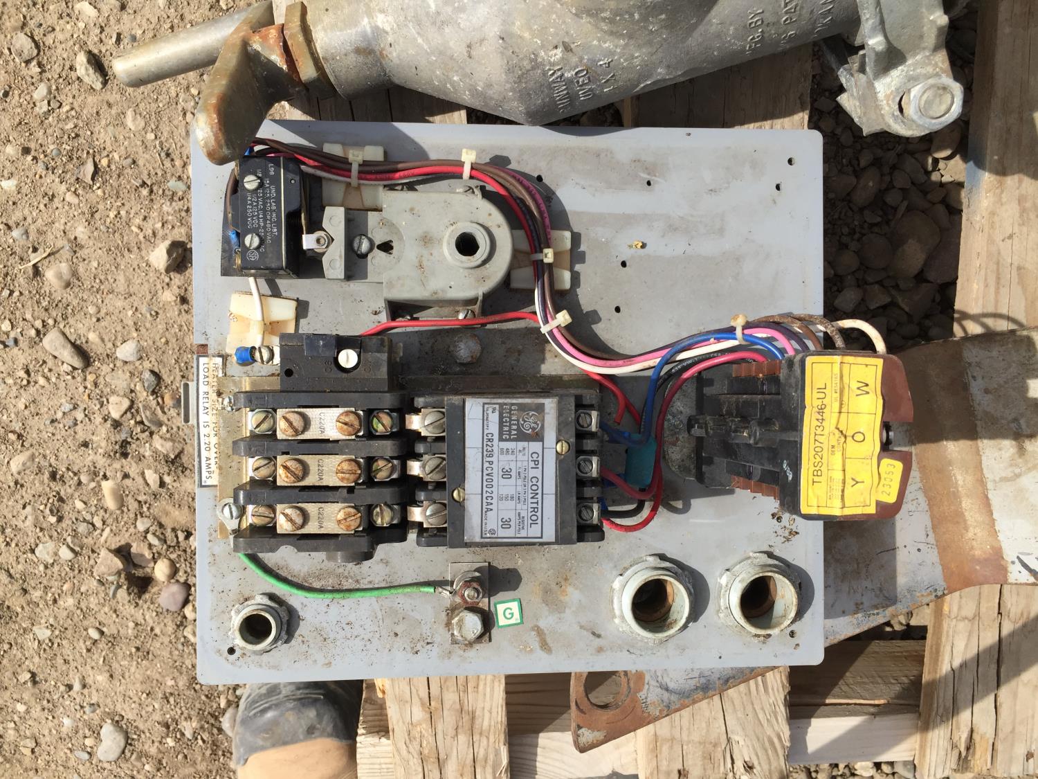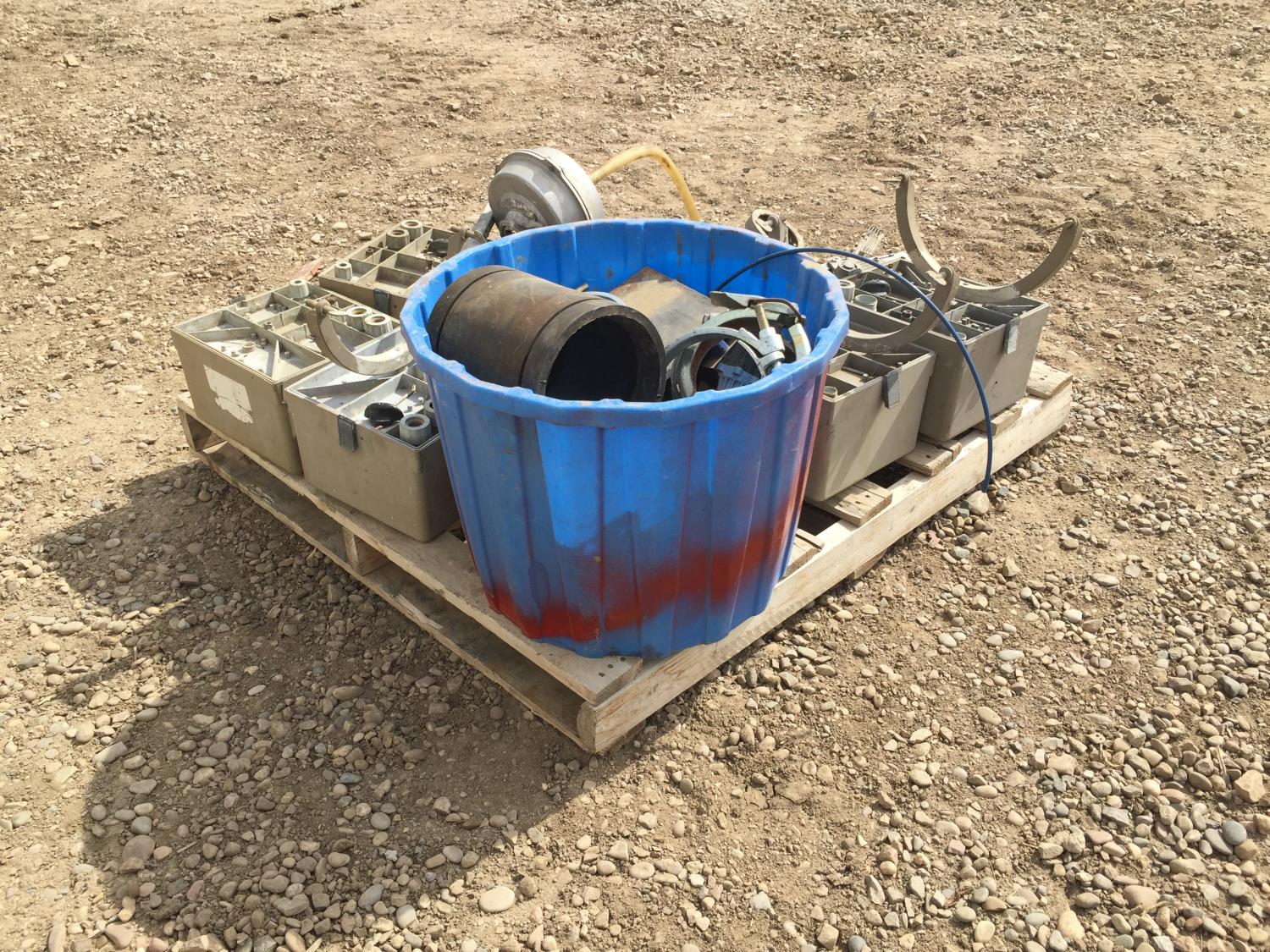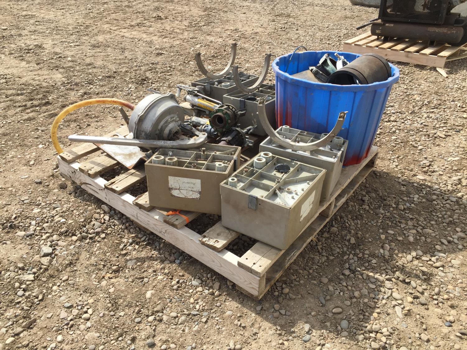 end gun, control boxes, pipe clamps