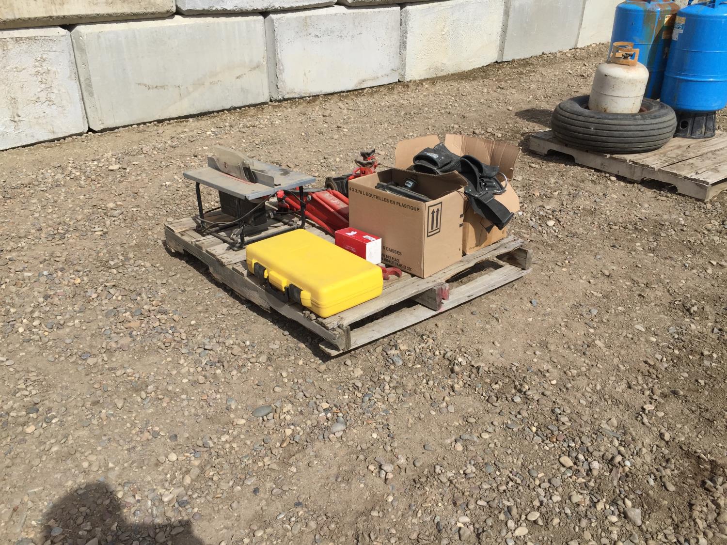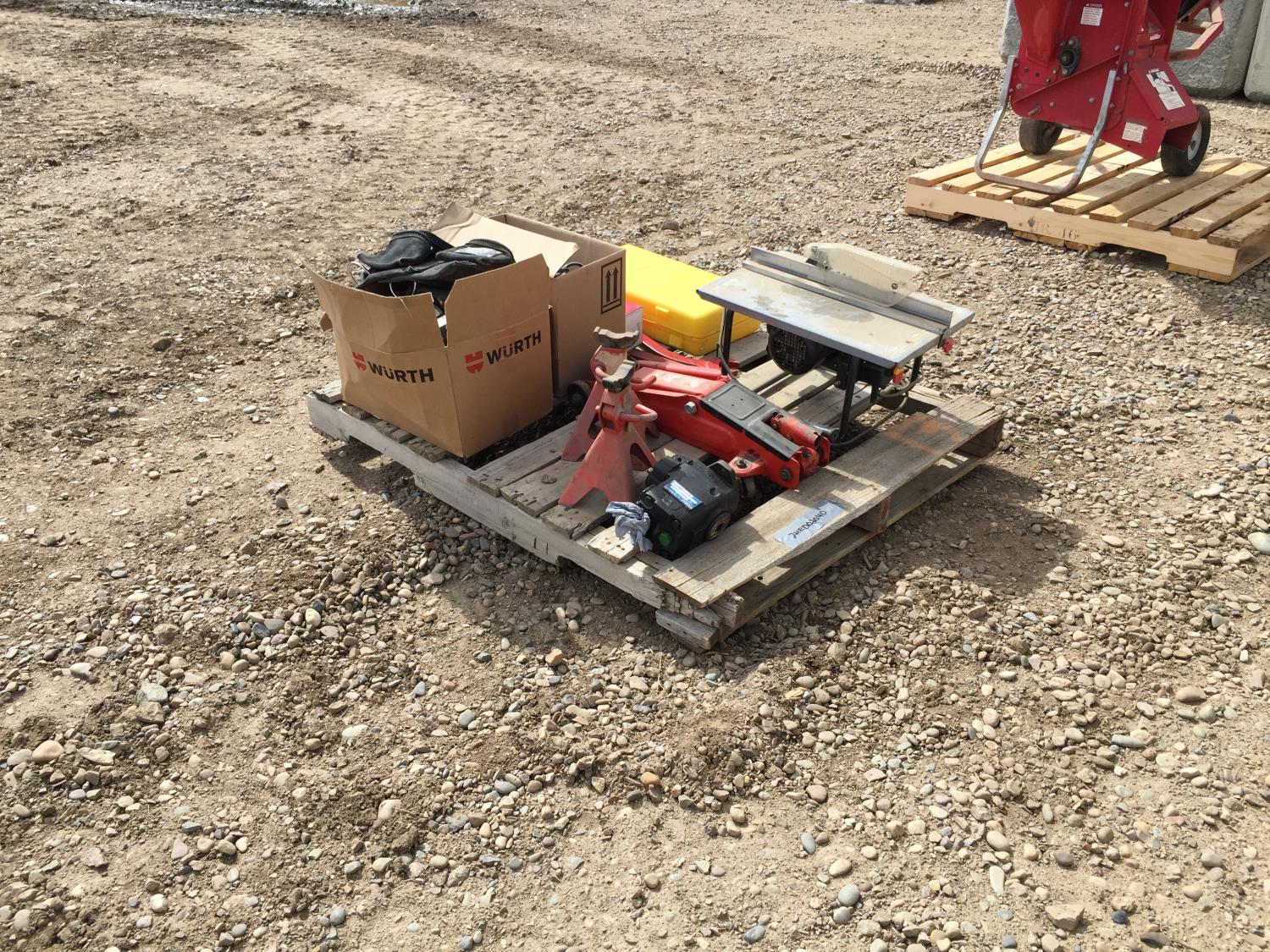floor jack, jack stands, miscellaneous. lights, transit, table saw