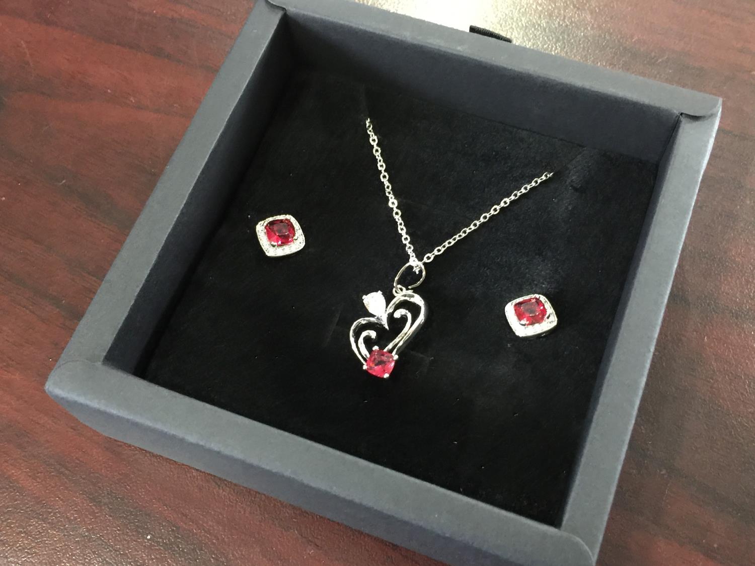 1306 Smartlife Platinum Plated Red Ruby 2 Piece Set (Unused)