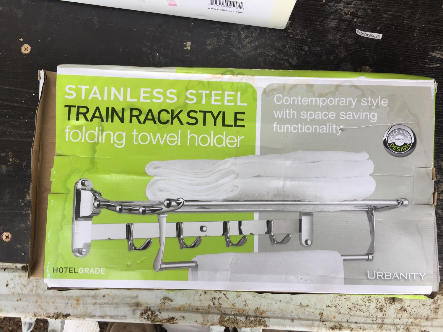 1055 Stainless Steel Train Rack Style Folding Towel Holder (Unused)