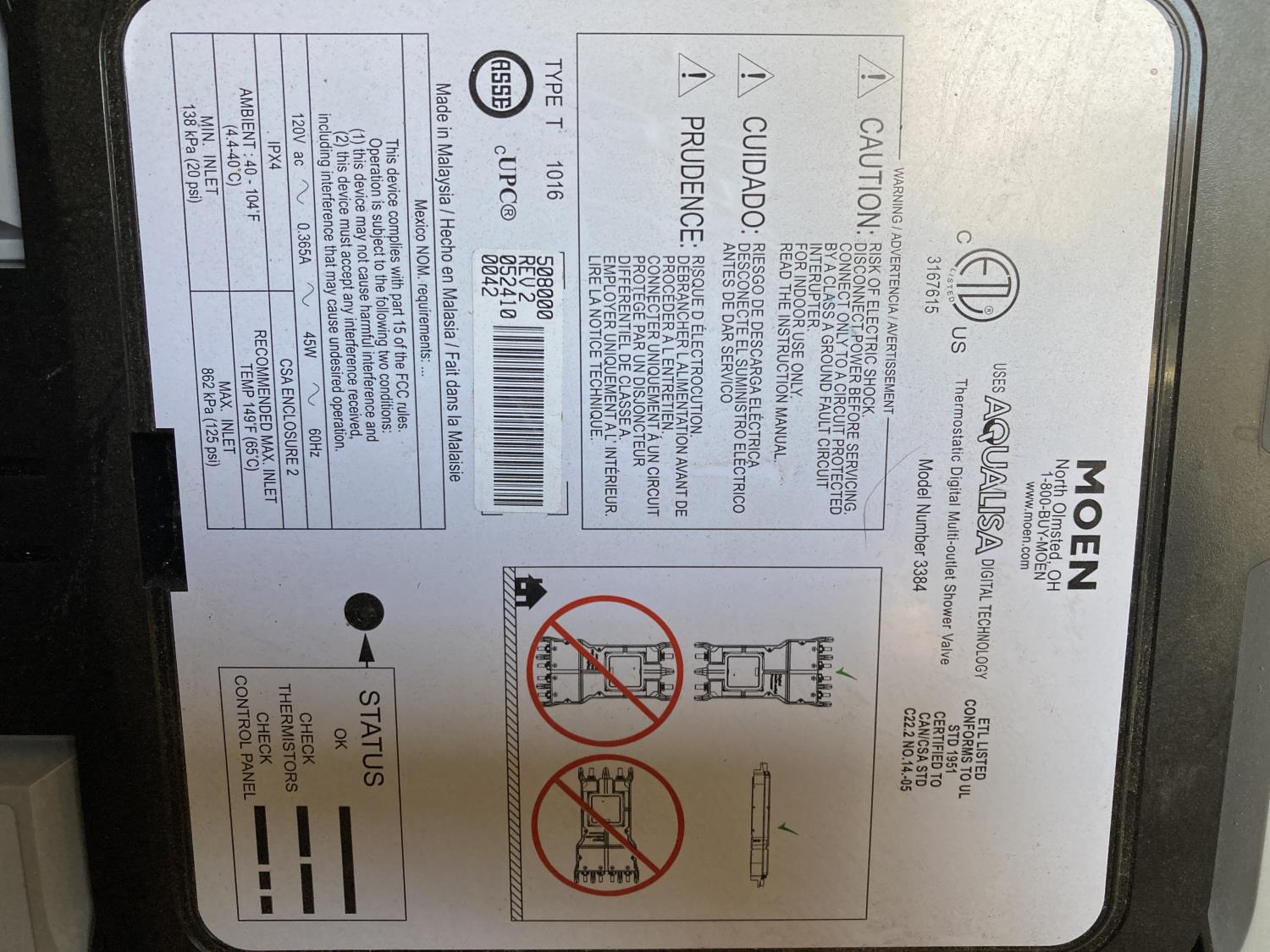 1050 Moen 3384 Thermostatic Digital Multi-Outlet Shower Valve