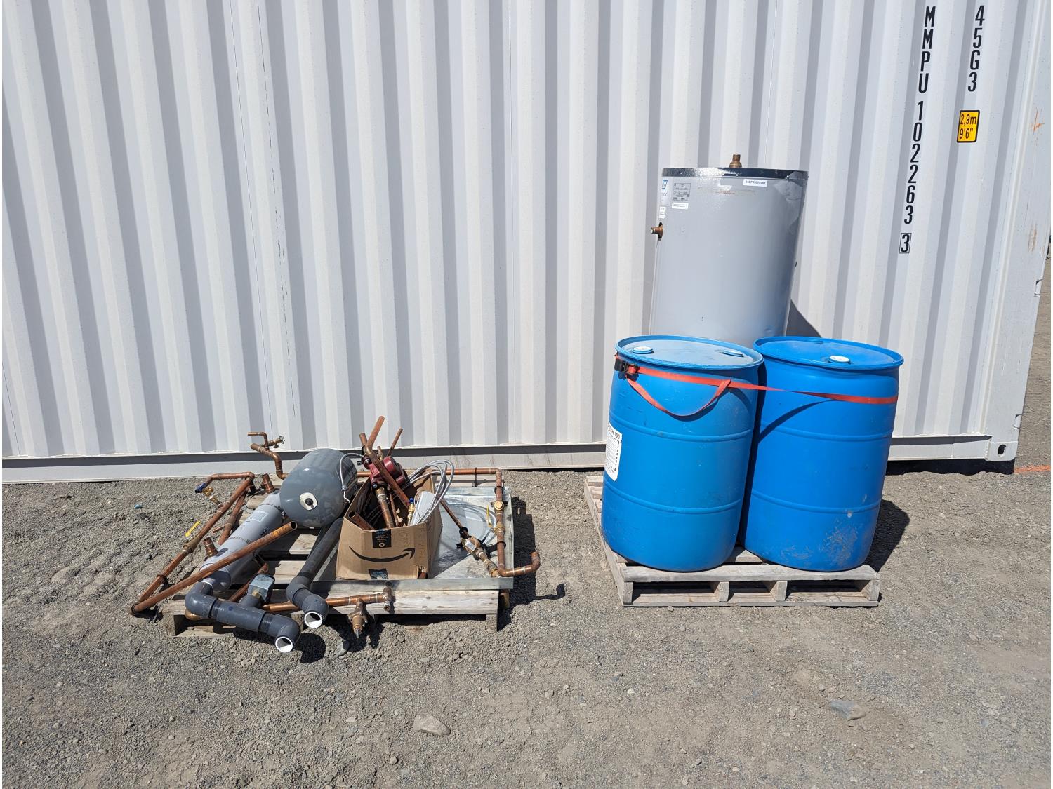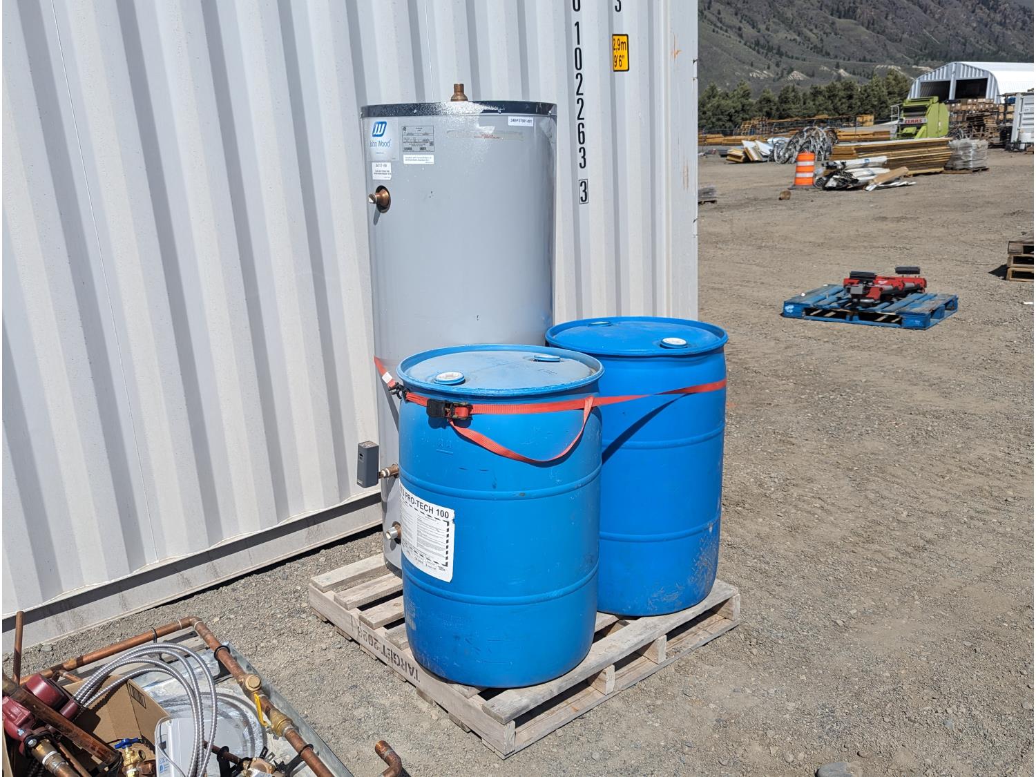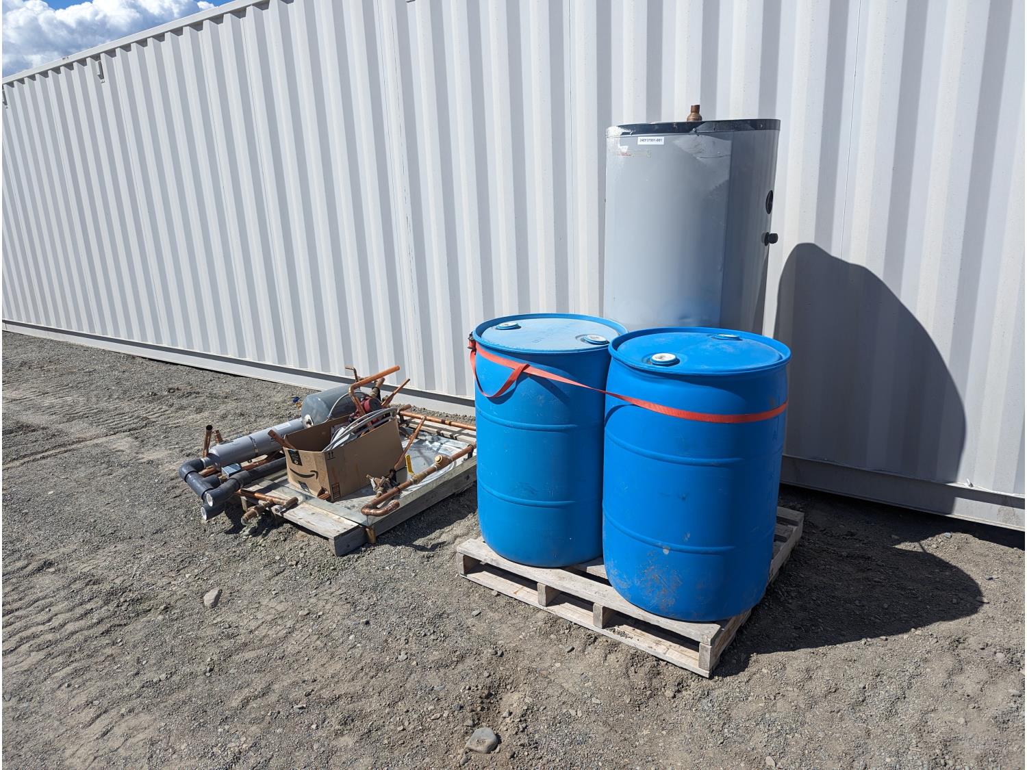450 80 Gallon Storage Tank, (2) Barrels Glycol, Misc Piping
