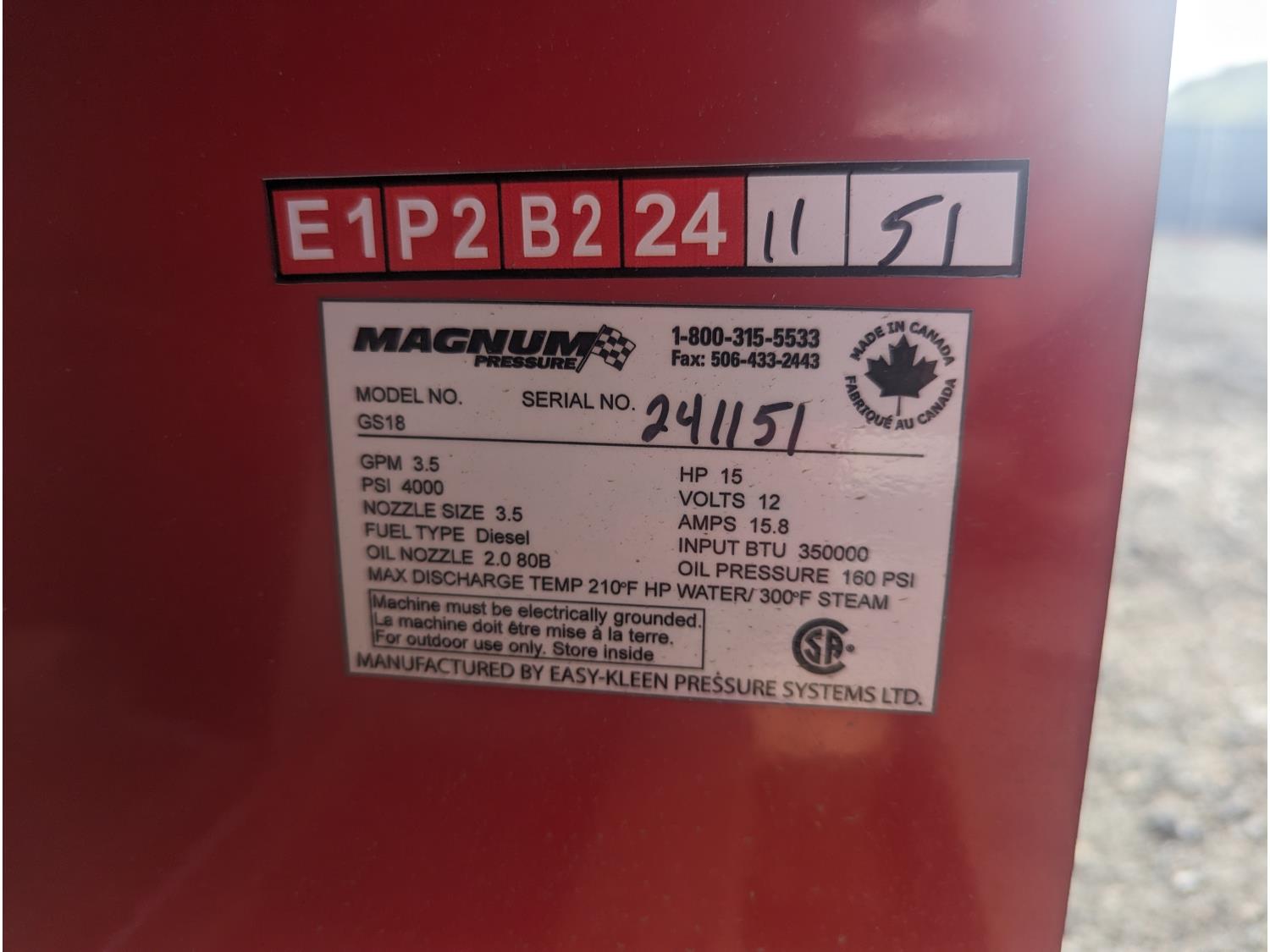 476 Magnum EKS-GS18 4000 Series Gold Diesel Fired Hot Water Pressure Washer (Unused)