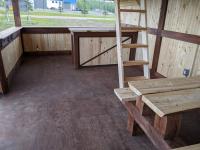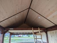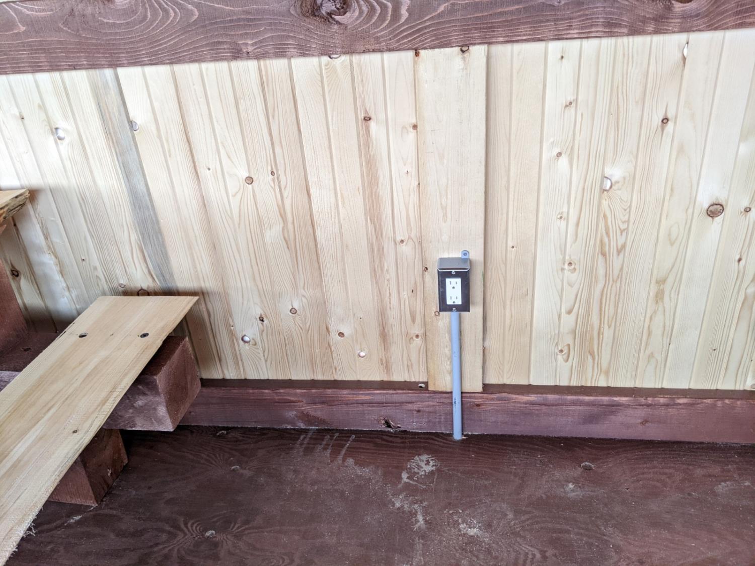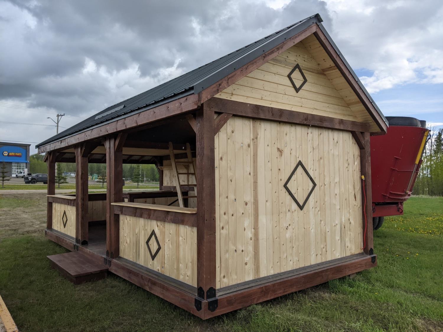 timber structure, metal roof, loft storage, pot lights and outlets wired for generator hookup, kitchen sink, and propane firepit