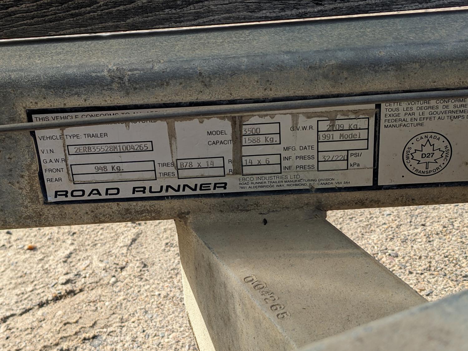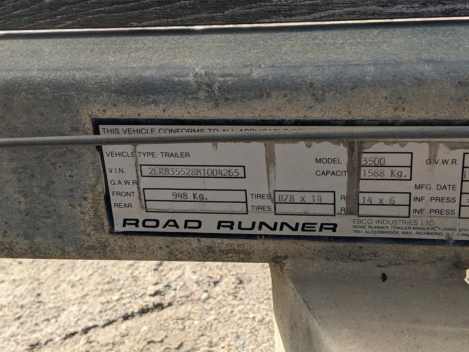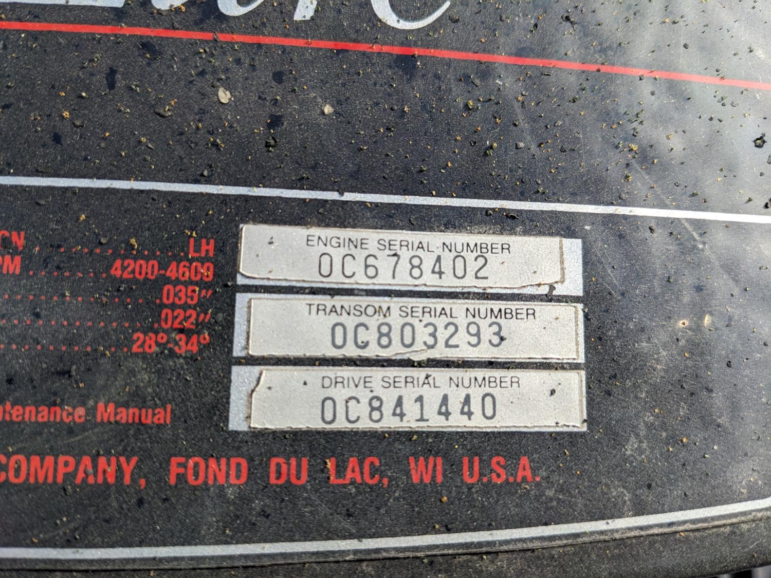 MerCruiser Alpha One 3.7L, 165HP engine, 1991 Road Runner trailer tires: 225/75R15