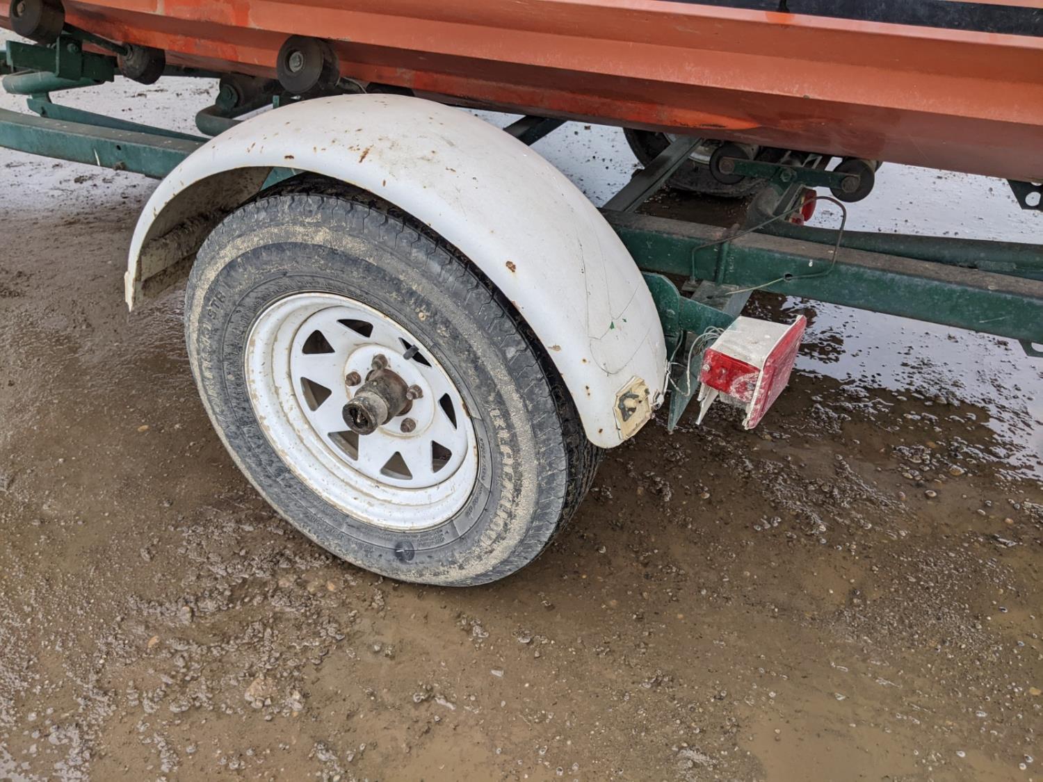 Mercury 85 HP outboard engine, closed bow, trailer, 205/75R14 tires