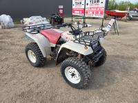 350 cc engine, manual transmission, Hi/Lo range, reverse, front and rear racks, 25X8-12 front tires, 25X10-12 rear tires